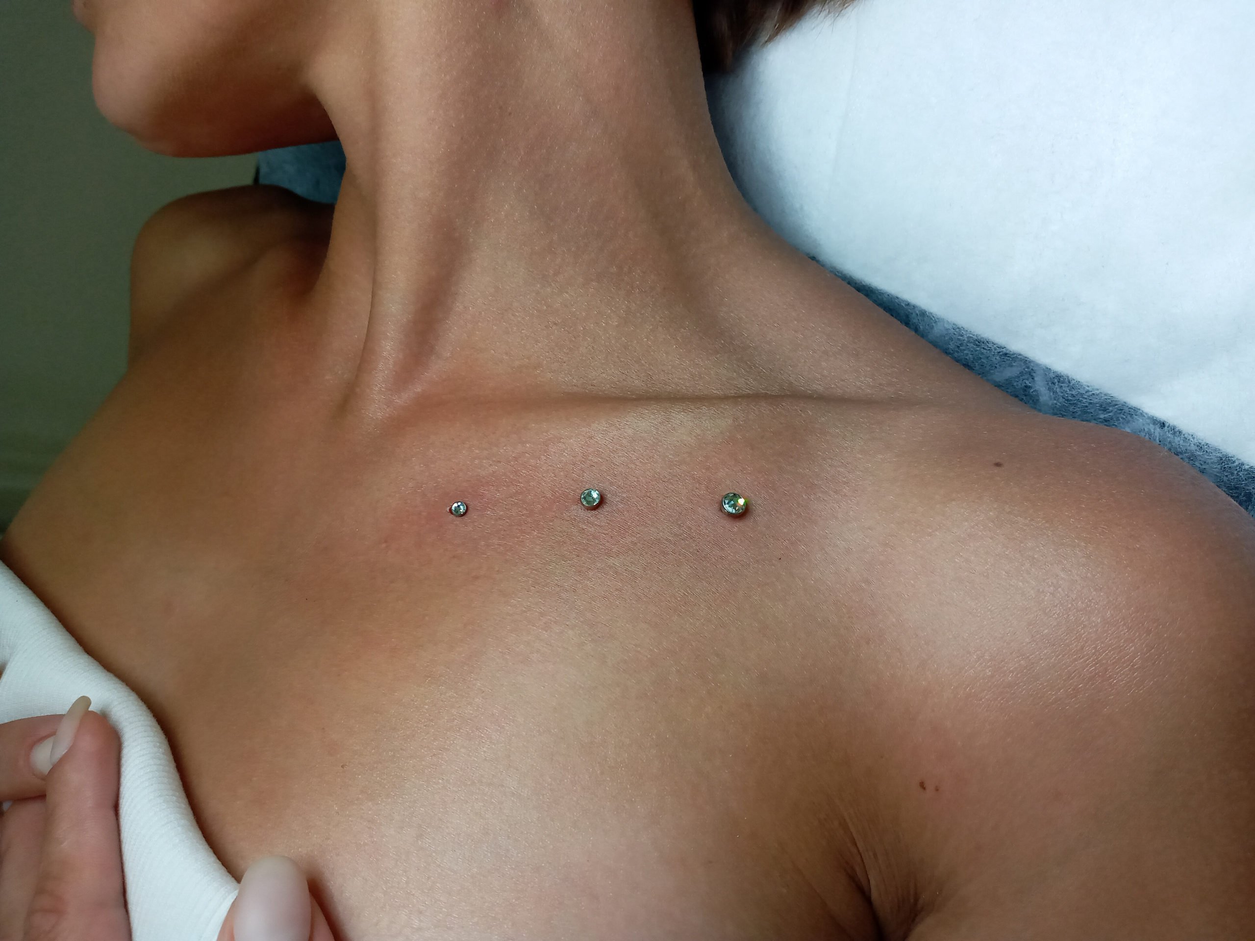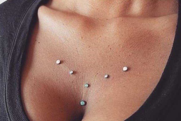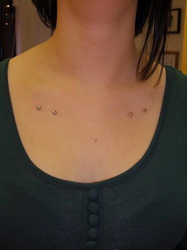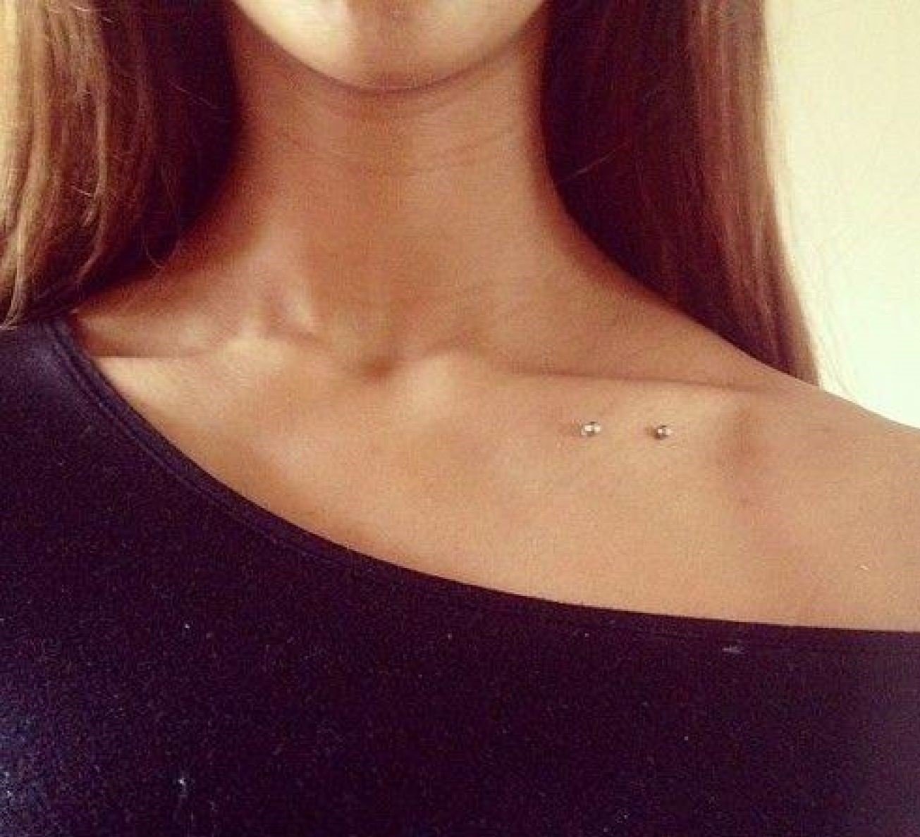 Ако носите дрехи, които разкриват раменете ви, изберете плосък пиърсинг на ключицата. Пиърсинг в областта на бедрата ще подчертае красотата на тази част от тялото. Подходящ е за хора, които носят дънки с ниска талия и изрязани топове. Обърнете внимание на красивите гърди, като си направите пиърсинг в областта на деколтето.