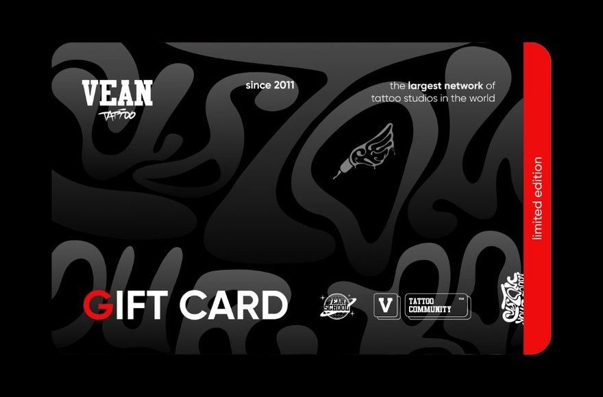 1* Универсален подаръчен ваучер е наличен във всички студия от мрежата на VEAN TATTOO. 2* Електронните ваучери са достъпни в мобилното приложение VEAN TATTOO и във вашия личен профил.