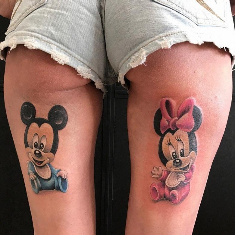 Светът на Дисни е специална посока, изображенията на Мики Маус и неговата приятелка често се използват за сдвоени татуировки.