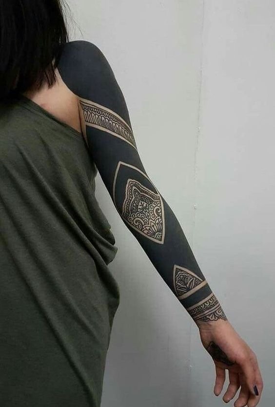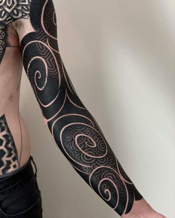 Най-често за татуировки се избират изображения на геометрични фигури или част от тялото е напълно изпълнена с черен пигмент, по-рядко набиват шарки. Има и други произведения в този стил, но тези три са най-популярни. Този стил е насока и за други стилове: етнически изображения, неотрайбализъм, тайландски татуировки и арт брют.