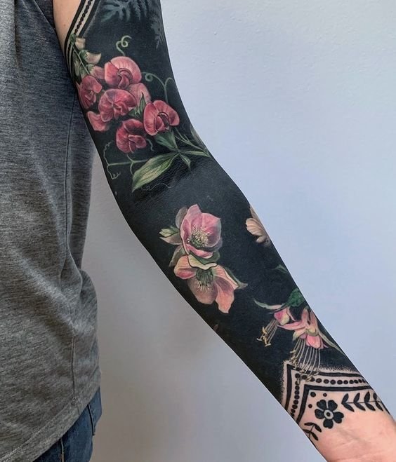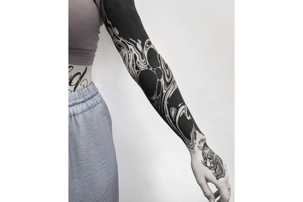 Оригинално изглеждат татуировките, в които стилът блекуърк се комбинира с друг стил.