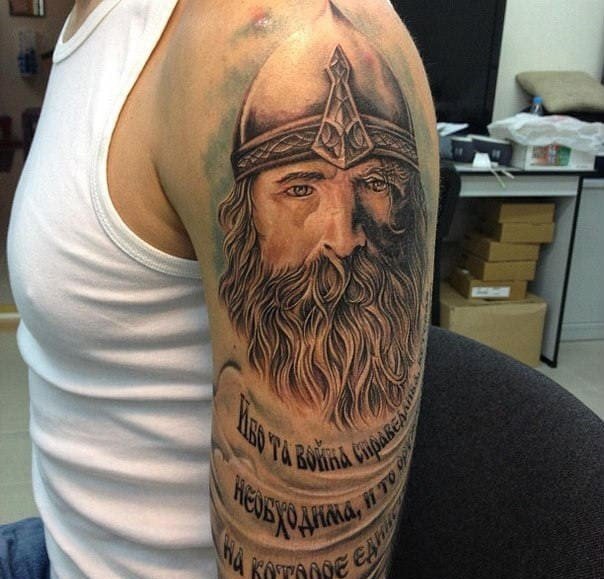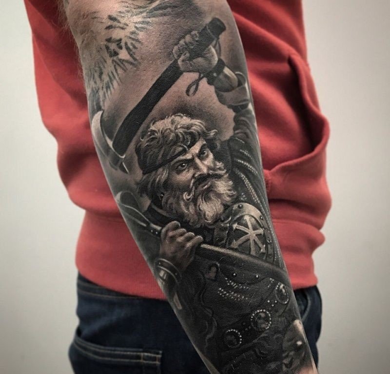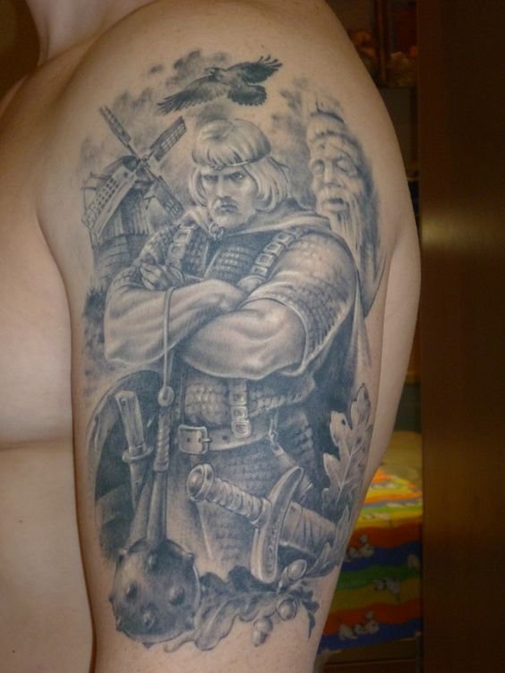 В изкуството на татуировките са много търсени изображения на приказни теми: герои от приказки, митове, епоси и легенди. Един от популярните герои, чийто образ често се избира за татуировка, е богатир. Образът на богатир отдавна е познат на всички ни, това е силен, величествен мъж, като правило, с широки рамене и мощна брада, в великолепна броня, с величествен поглед. Богатирите защитаваха народа от различни злодеи, които се стремяха да атакуват, и дори защитаваха народа си от зли сили. Имената на великите богатири влязоха в историята, за тях бяха заснети много филми и анимационни филми. Това са положителни герои, защитници и смели воини, не е изненадващо, че техните изображения също дойдоха в индустрията за рисуване върху тяло.