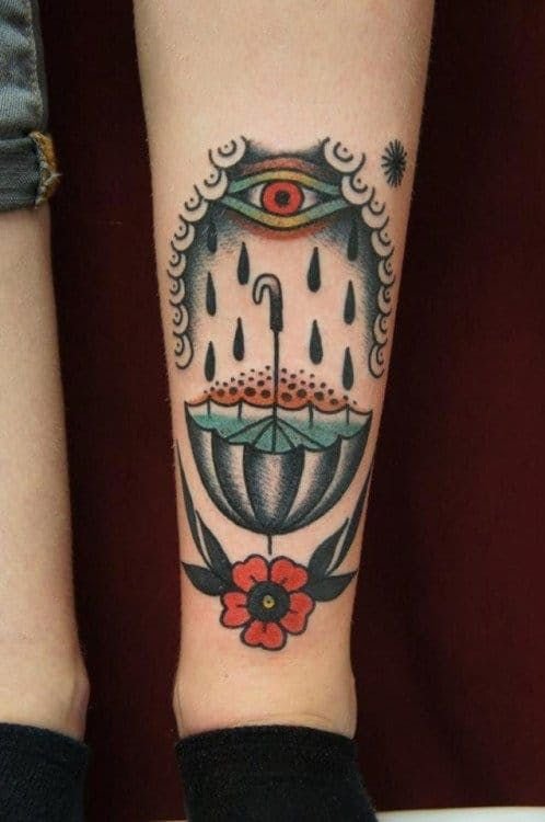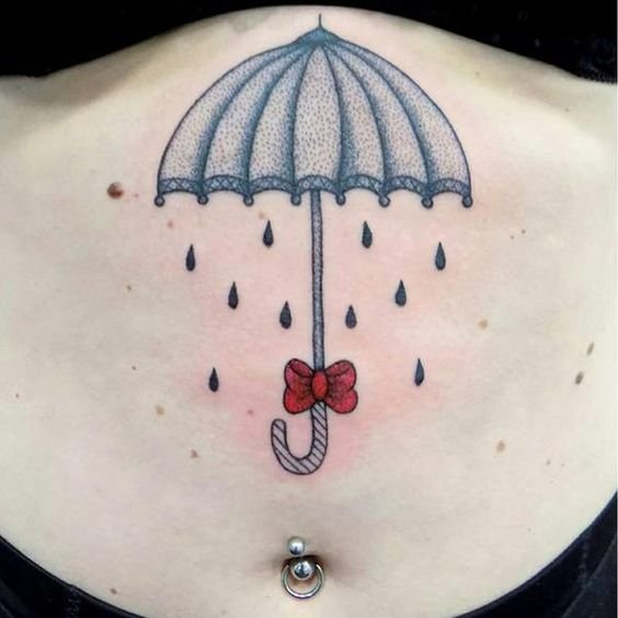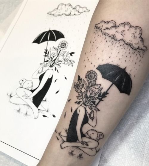 Чадърът върху тялото на жена подсказва, че притежателката му търси защита, вътрешна сила и увереност. А татуировката ѝ помага да се справи с вътрешната си несигурност както при различни житейски обстоятелства, така и в любовните дела.