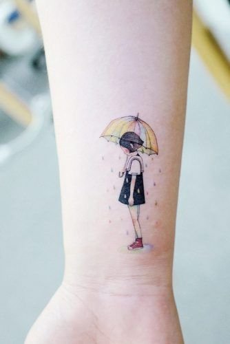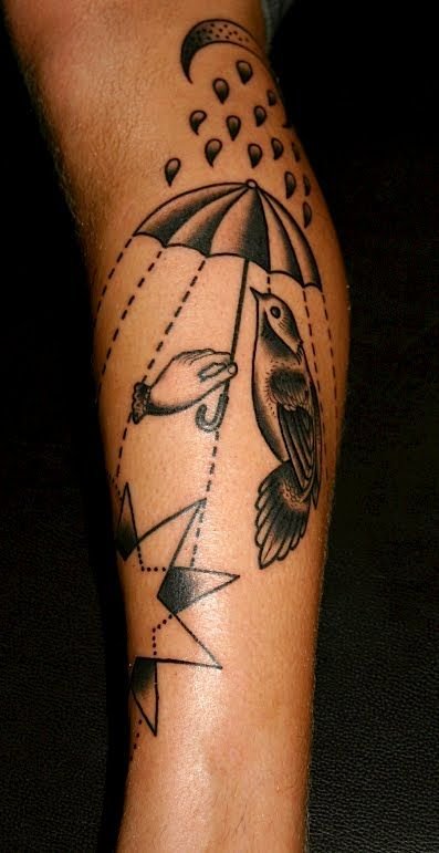 Татуировката с чадър изглежда много оригинално и интересно, както върху мъжкото, така и върху женското тяло.
