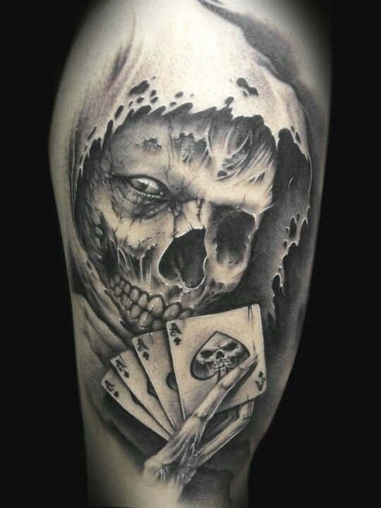 Черепът с кръстосани кости е бил известен пиратски символ и в древни времена е предизвиквал мигновен страх и ужас у хората. Татуировката с череп често се прилага при комарджии и измамници, чийто живот е свързан с постоянен риск и жесток късмет, за такива хора татуировката с череп се е превърнала донякъде в символ на отчаянието.