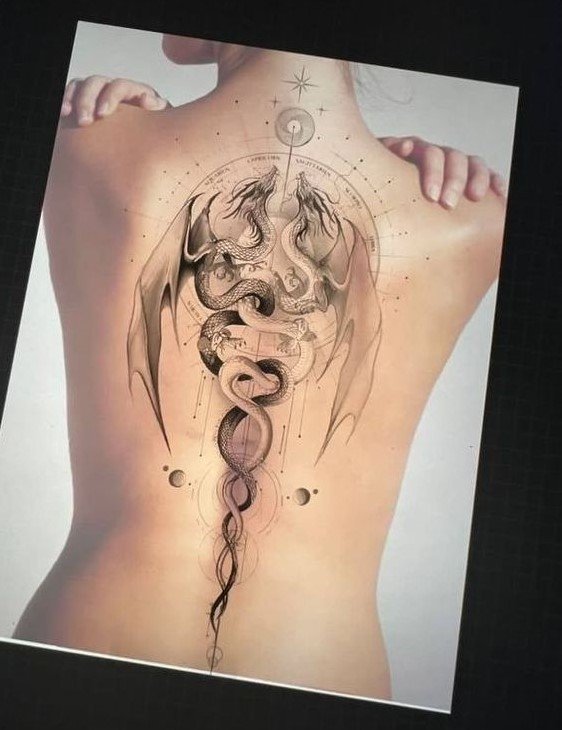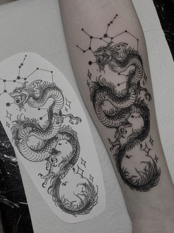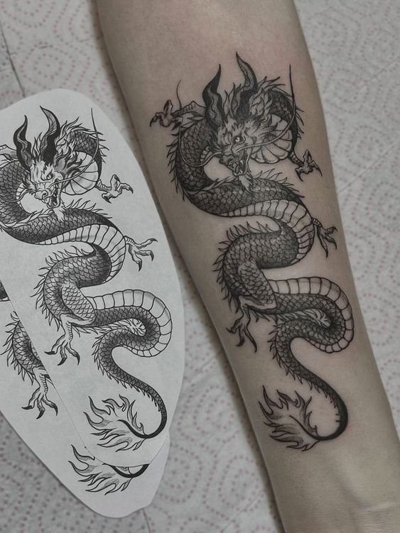 Ако изберете татуировка с дракон, обмислете добре къде ще поставите дракона и неговата цветова гама. Драконът е изобразен най-колоритно на гърба; голямата площ напълно разкрива пълната сила, величие, грация и мощ на дракона. Ако татуировката е малка, всички качества на митичното същество няма да бъдат предадени лесно.
