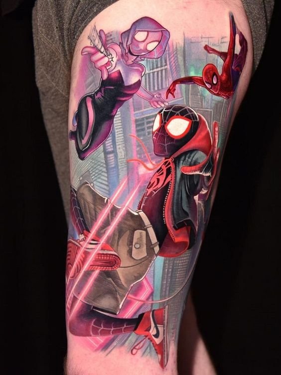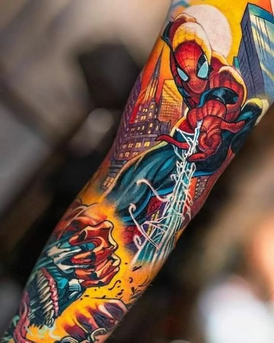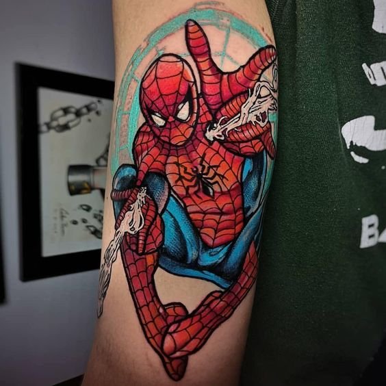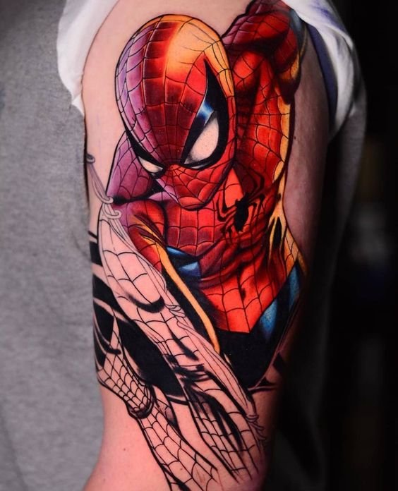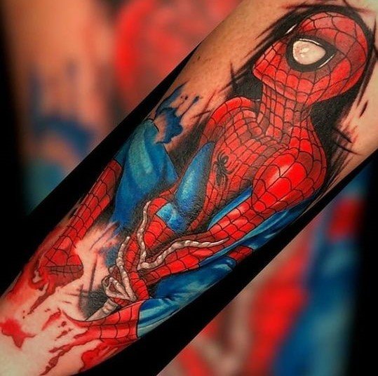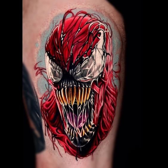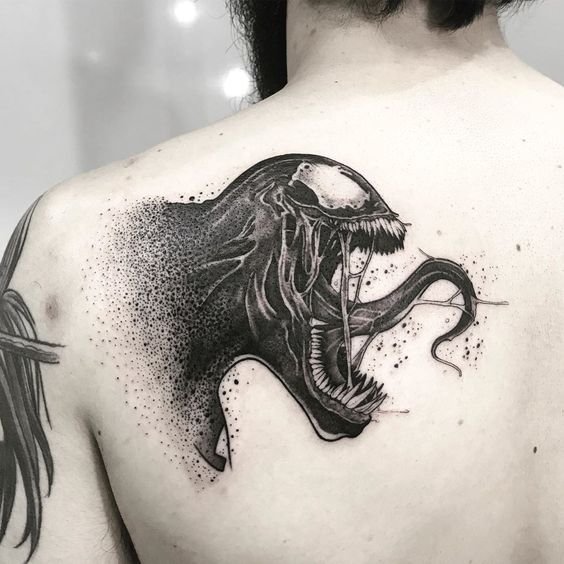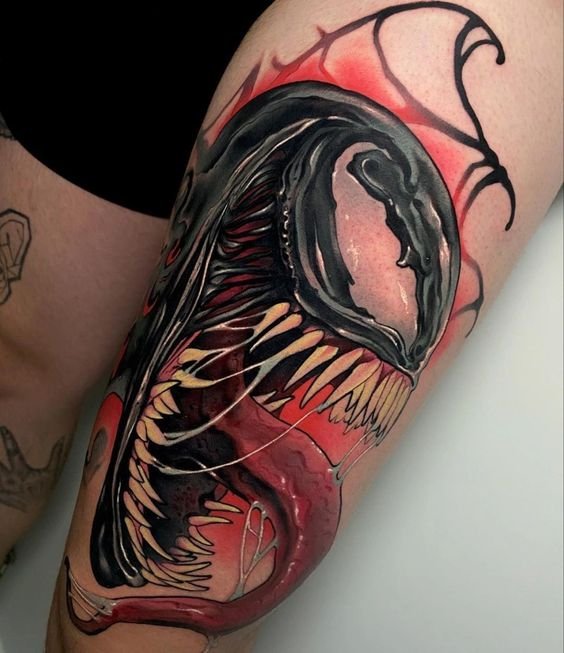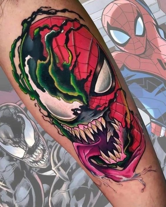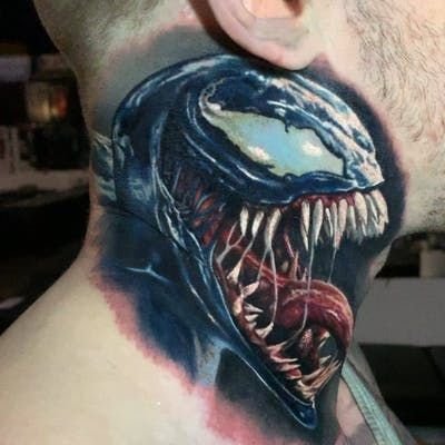 - Венъм. Най-великият злодей в историята на комиксите. Извънземен паразитен организъм с ужасяващ вид. Създанието действа като антигерой, който има една единствена цел - да убие Спайдърмен. Той няма да спре и няма да пощади никого по пътя си, невъзможно е да го спреш, камо ли да го хванеш. Антигероят има способността да се маскира като всяка среда. Обсебвайки човек, той е в състояние да го превърне в самото зло. Само топлината и силата на звуковите вълни могат да извадят Венъм от човешкото тяло. Въпреки факта, че Венъм е злодей, татуировката с неговия образ носи редица положителни качества. Той е необичайно силен и много упорит, освен това е в състояние да контролира хората със силата на мисълта. Антигероят върви към целта си и никой не може да го спре.Безстрашие, решителност, висока интелигентност, силен характер и хитрост са най-основните интерпретации на татуировката с Венъм.