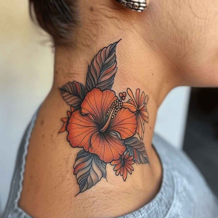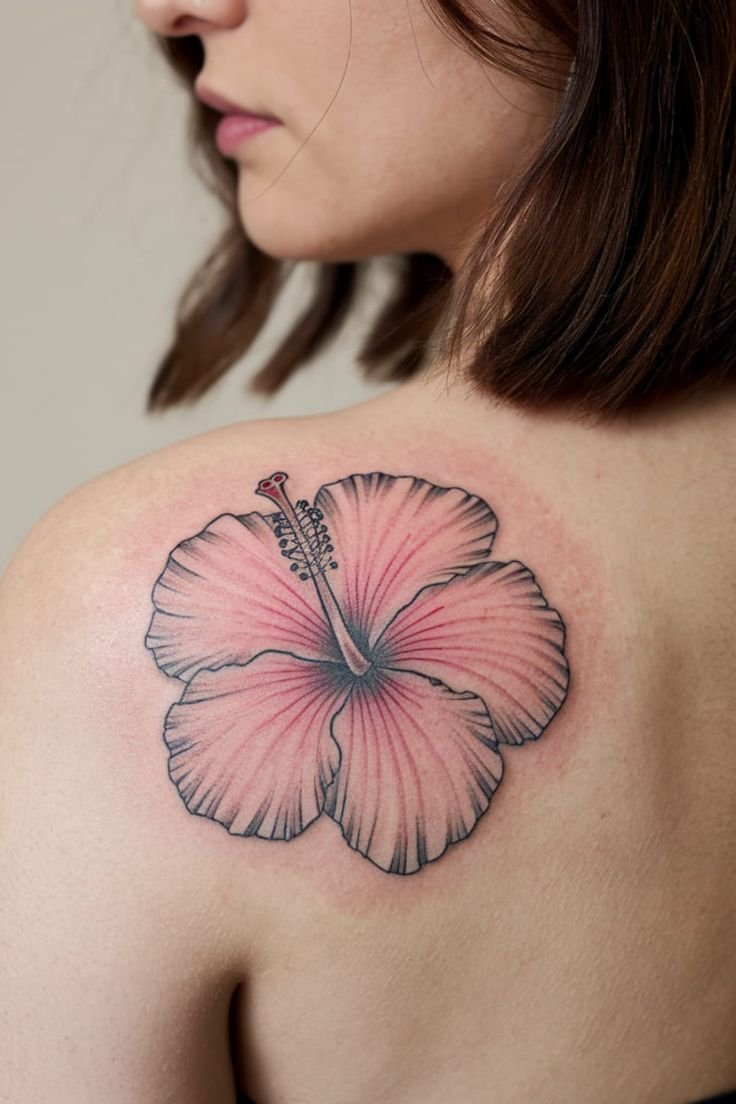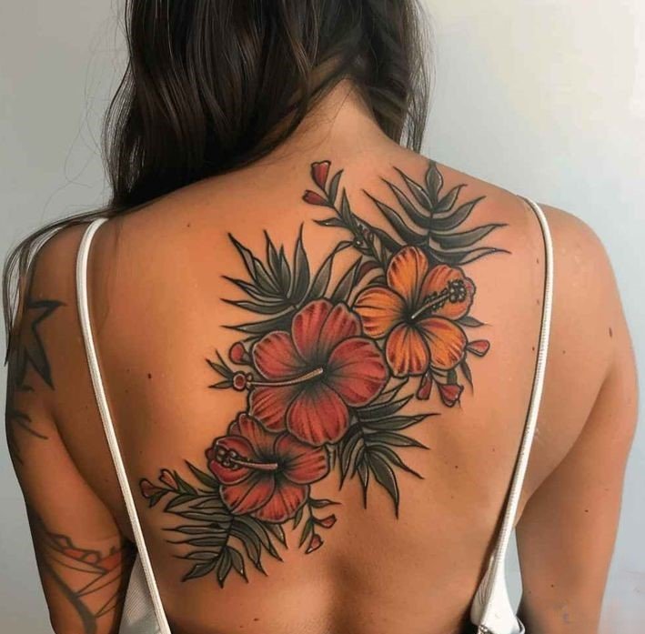 - Лопатка или гръб — идеално място за големи и детайлни татуировки с хибискус, които можете да покажете или скриете според желанието.