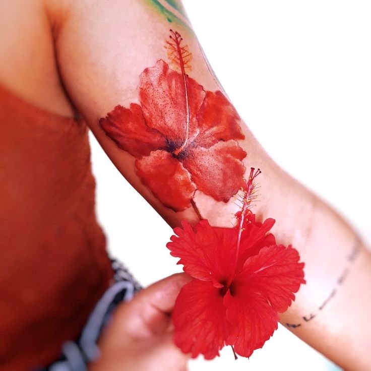 Този екзотичен цвят може да бъде връзка между вашия вътрешен свят и околния свят. Без значение какво значение искате да вложите в татуировката, хибискусът ще бъде прекрасен избор за тези, които търсят тату, съчетаваща красота, дълбочина и индивидуалност.
