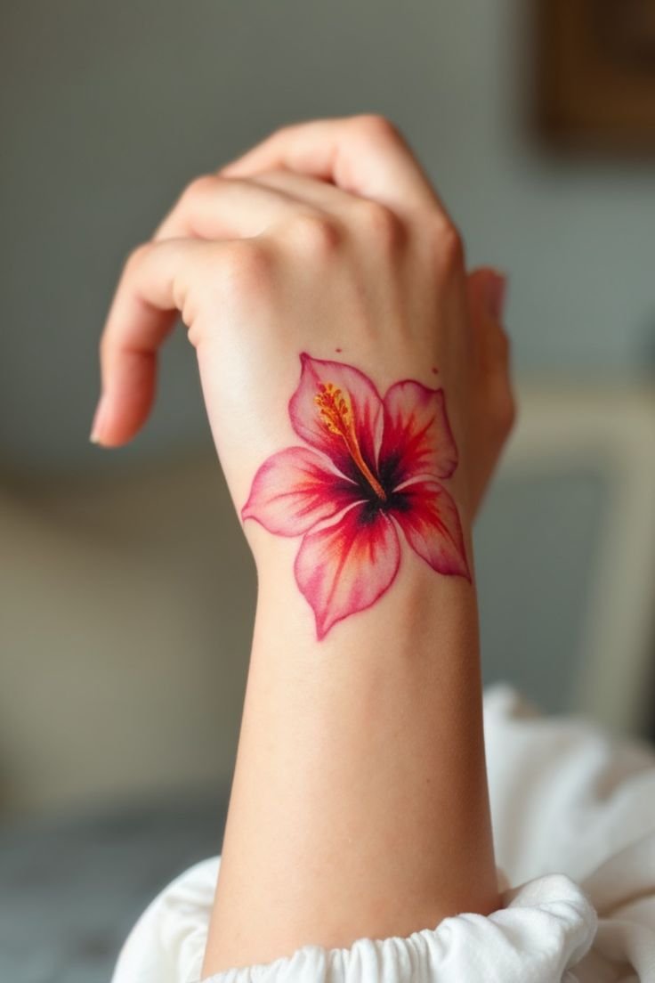 - Китката — едно от най-популярните места за малки, изящни тату с хибискус. Това място е идеално за миниатюрни рисунки и символи.