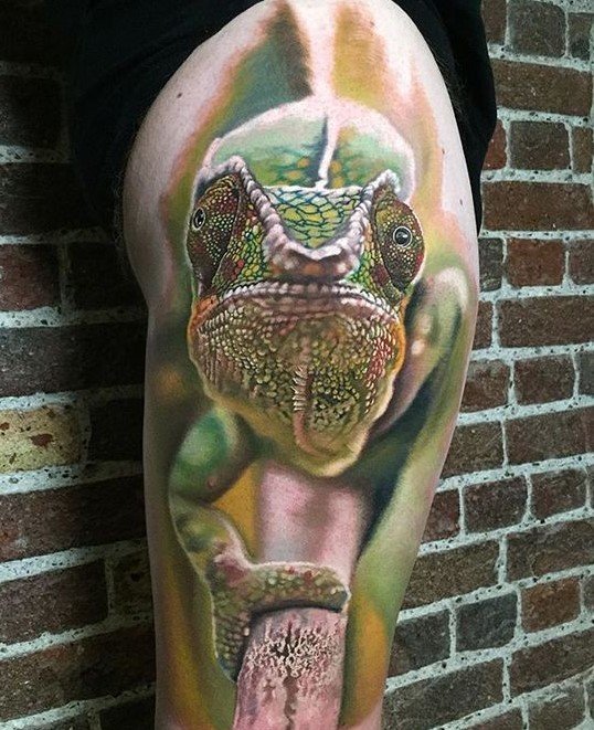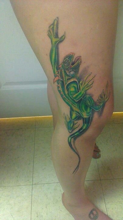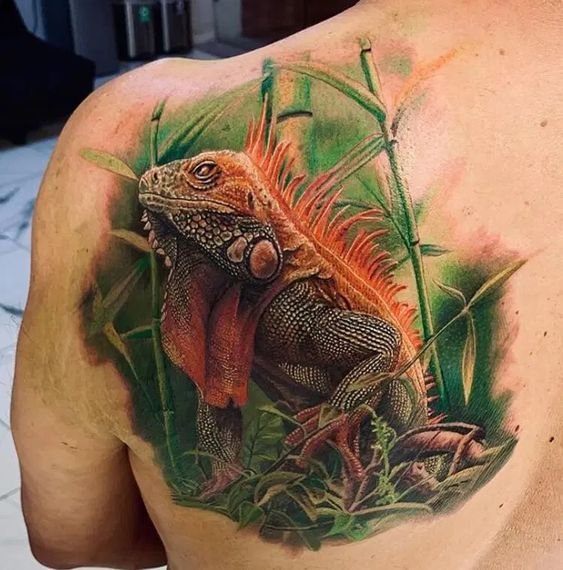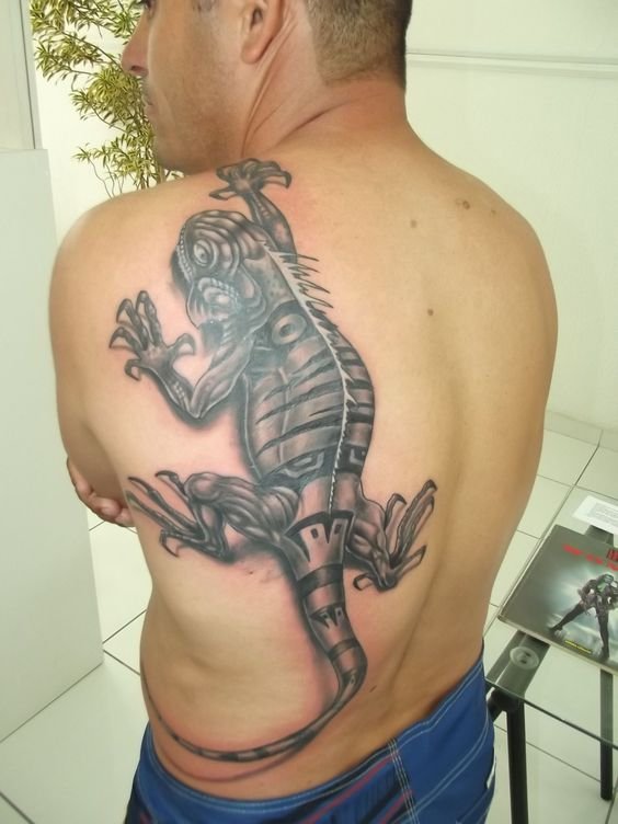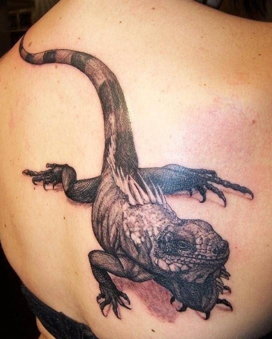 Избирайки най-подходящата зона на тялото за татуировка, не трябва да се притеснявате много. Влечугото ще изглежда страхотно навсякъде: гръб, предмишница, гърди, крака, корема, долната част на гърба и така нататък. Но все пак татуировката изглежда най-впечатляващо в доста голям мащаб. На обемисти части от тялото майсторът на татуировките ще може напълно да предаде красотата на игуаната и вниманието към вашата личност е гарантирано.
