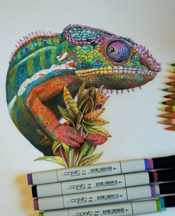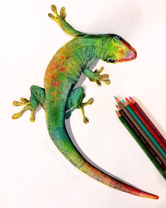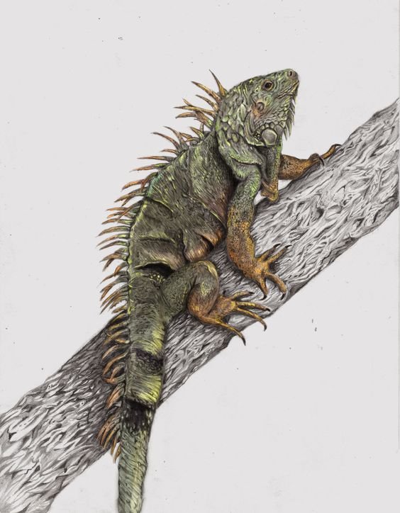 Скиците на игуани могат да бъдат направени в голямо разнообразие от цветове, но най-често се използват зелени нюанси с добавяне на червено или оранжево.