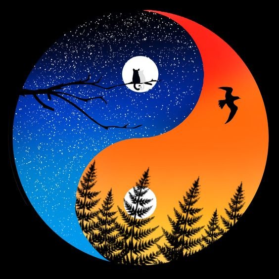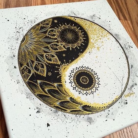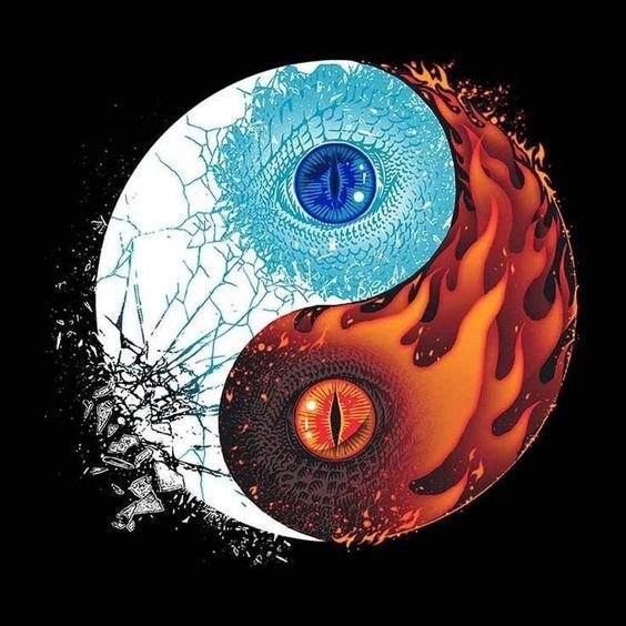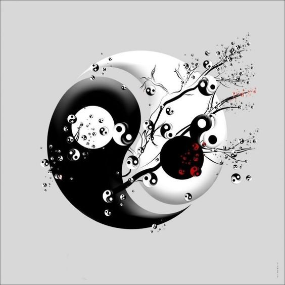 Въз основа на митологията на Китай, той олицетворява хармонията, която се формира чрез комбиниране на противоположни страни: мъжки и женски. Ин (черен цвят) олицетворява женската и отрицателна енергия, която е знак на луната и нощта, злото и тъмнината, студа, земята и смъртта. Той също така означава пасивност, четни числа, плодородие и хармония в отношенията. Ян (бял цвят) е олицетворение на мъжкото начало, положителната енергия, която е знак за доброта и светлина, топлина, слънце и живот. И обозначава нечетни числа и активност. Ин и Ян, въпреки че са противоположности, се допълват взаимно и по този начин създават баланс.