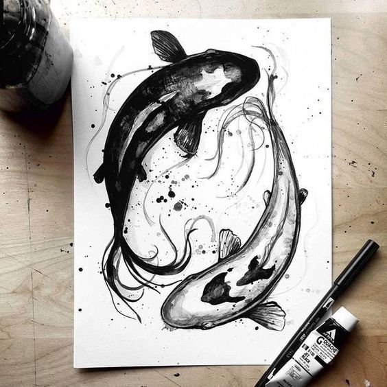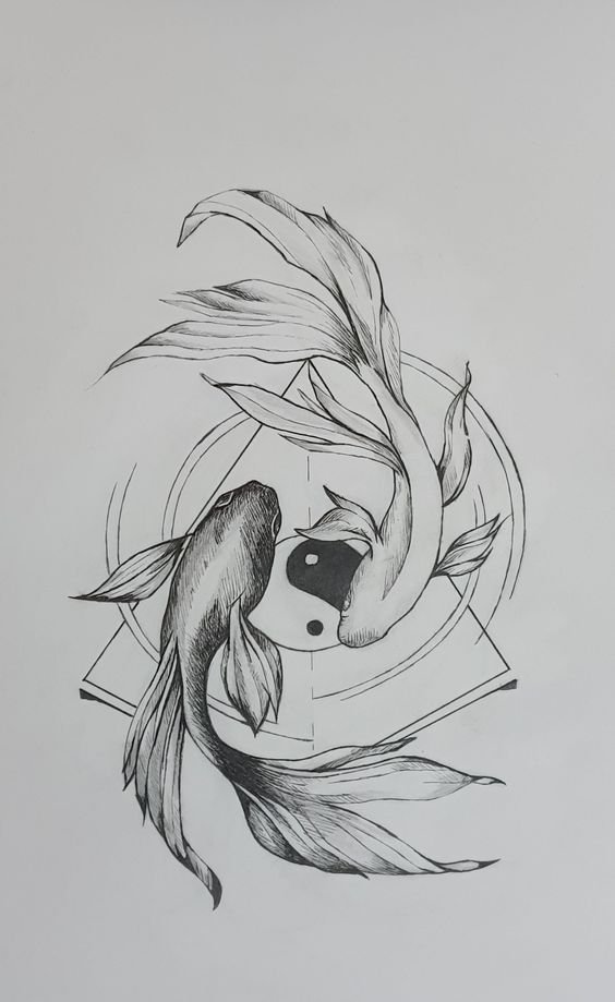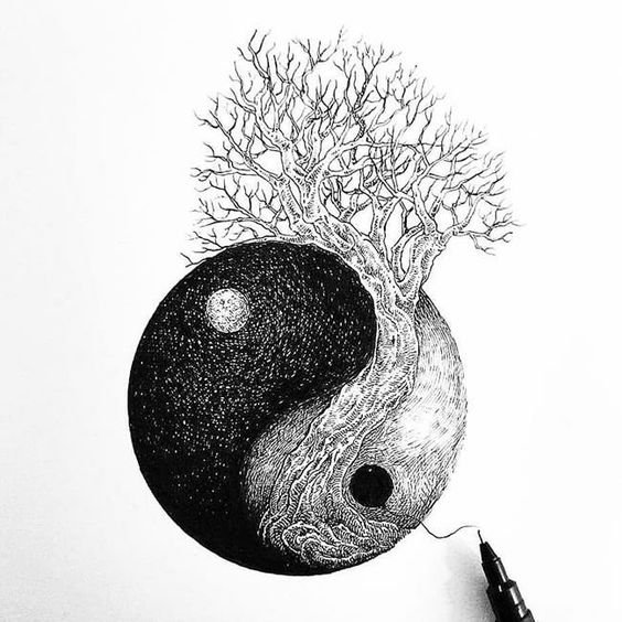 Скица на татуировка Ин-Ян носи оптимизъм, спокойствие и себепознание. Означава способността на човек да се наслаждава на малките неща и също така помага на собственика на татуировката да намери положителни аспекти дори в черната ивица на живота.