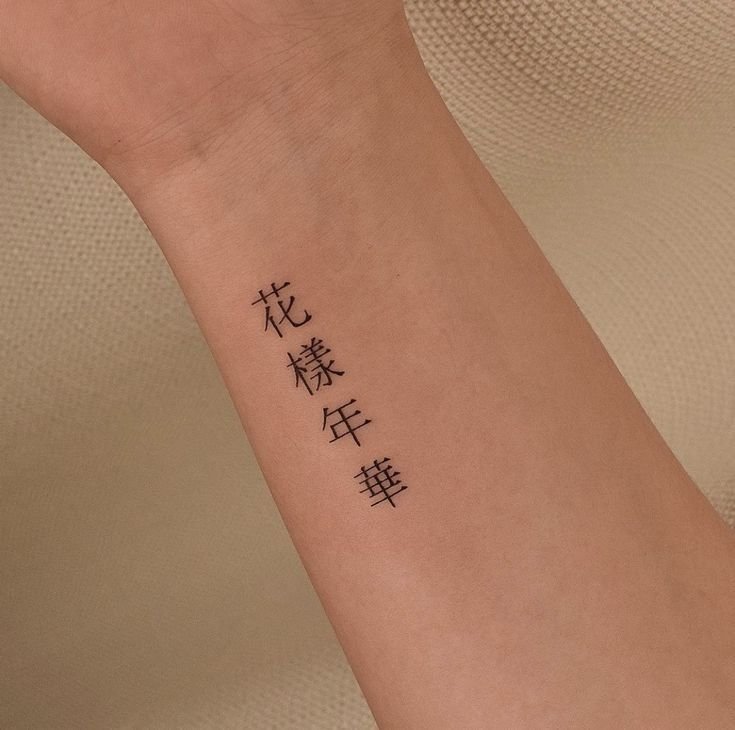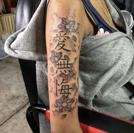 Символите на китайската, японската азбука привличат със своята необичайна форма, минимализъм и тайно значение. Йероглифите могат да бъдат приписани на татуировки с надписи, но основната разлика е, че йероглифът не е изобразен с различни шрифтове. Шрифтовете са подходящи само за фрази на други езици: английски, руски, арабски надписи.