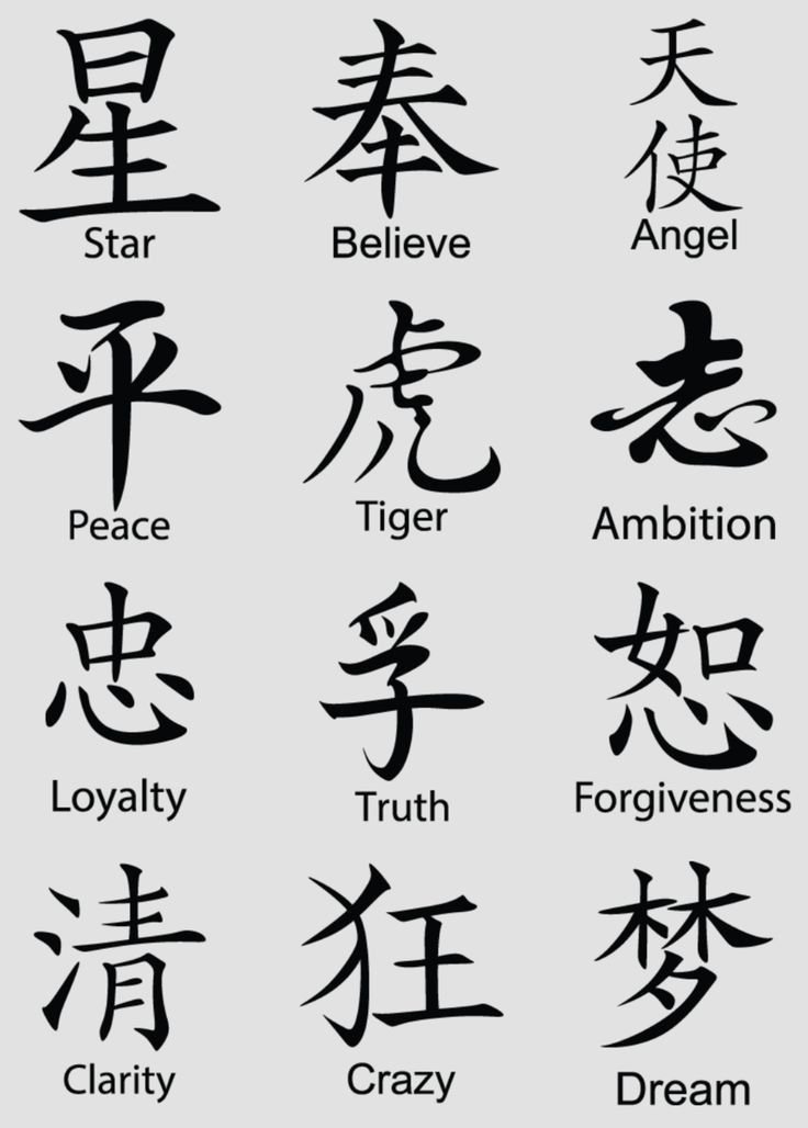 Интересно е, че скиците за татуировки на йероглифи често се избират от хора, които са напълно незапознати с културата на Изтока и не знаят нито китайски, нито японски.