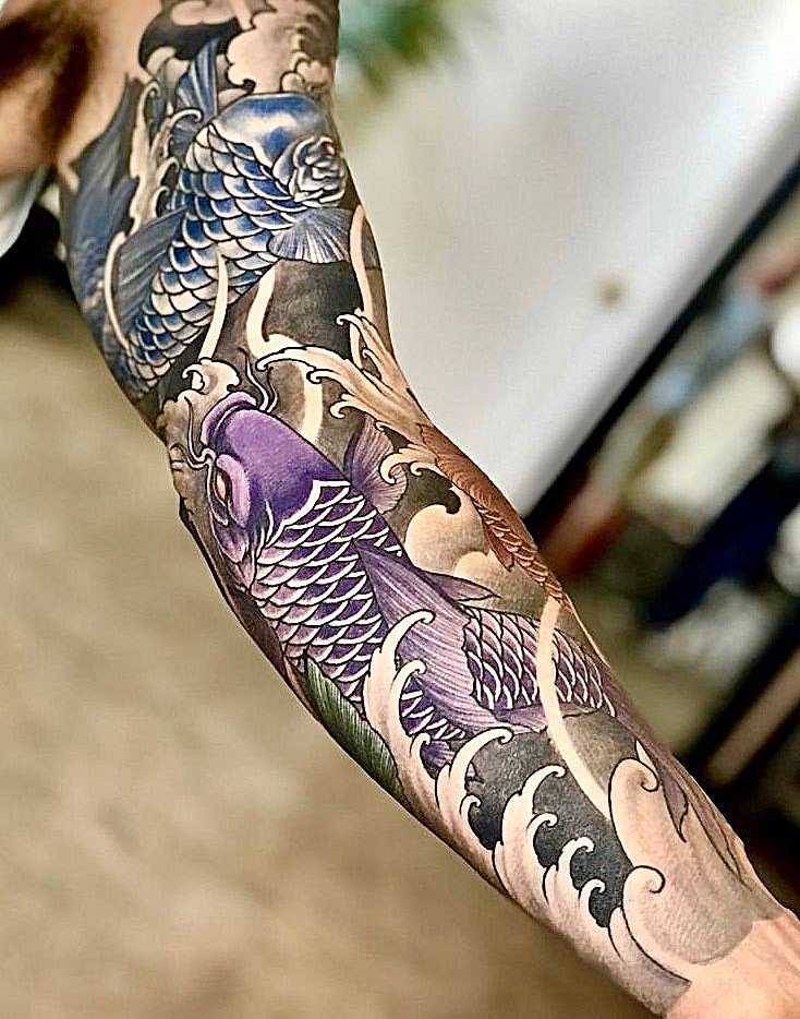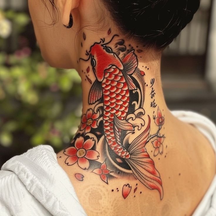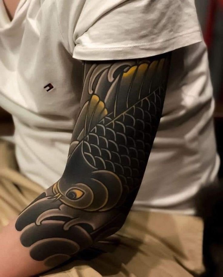 Карп Кои (или японски карп) е едно от най-известните и красиви животни в японската култура, което се е превърнало не само в символ на сила и упоритост, но и в обект на множество татуировки.