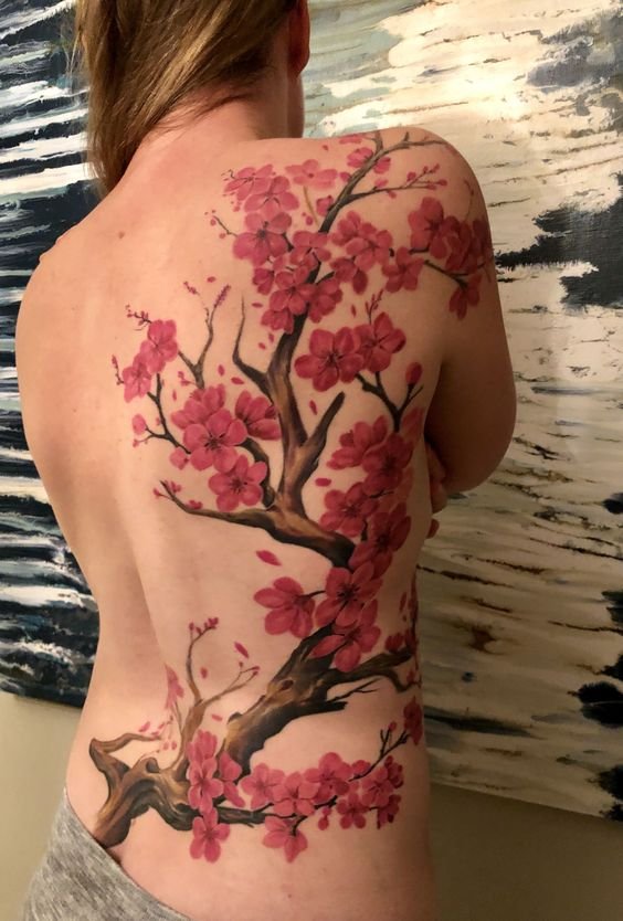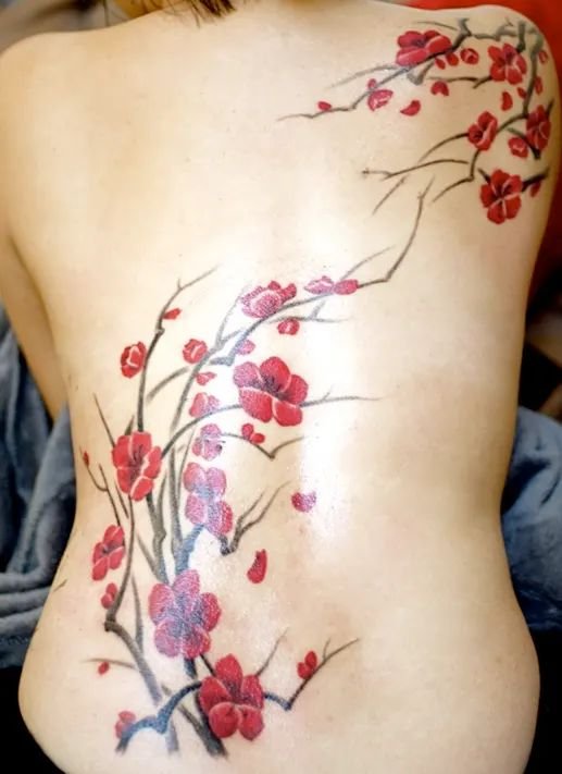 В изкуството на татуировката не само клонът на сакура или нейните цветя са много търсени, но и изображението на самото дърво.