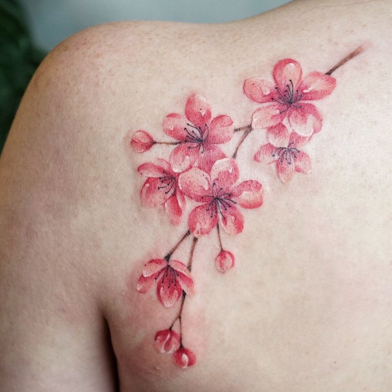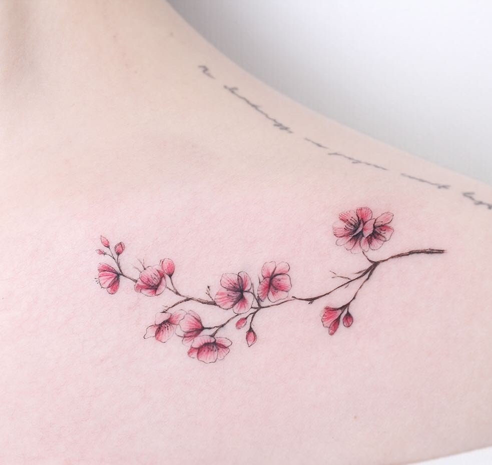 Ако говорим за дърво, рисунката може да изглежда най-добре на големи площи, самите цветя ще изглеждат страхотно на всяка част от тялото. Скица на клон от сакура изглежда добре на ключицата, китката, предмишницата. Всичко зависи от Вашето въображение и желания.