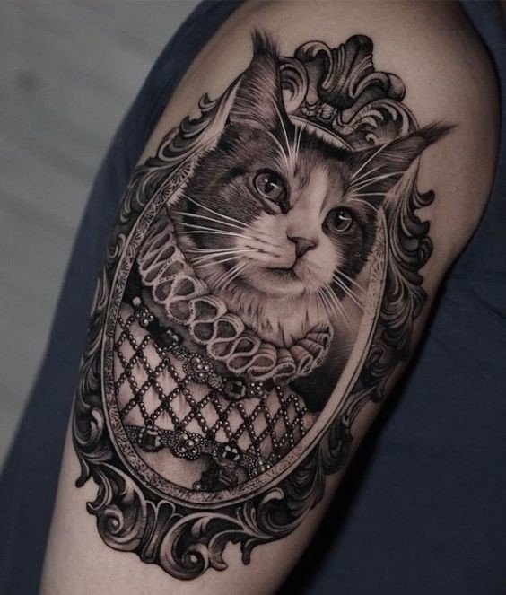 Древноегипетската богиня на забавлението, радостта и любовта Баст е изобразявана с глава на лъвица и тяло на домашна котка. В този контекст татуировката символизира успешните романтични връзки, плодородието и женската красота.