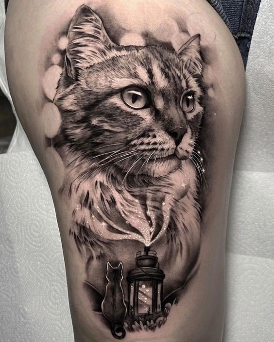 В скандинавската митология котката служи на Фрея, богинята на любовта и красотата. В японската култура котката е често срещан талисман, който привлича късмет и предпазва от тъмни сили. Пухкавите животни често се свързват с вещици и магьосници, което ви позволява да разглеждате татуировката като магически талисман. Значението на татуировката на Котката може да бъде просто или дълбоко - всичко зависи от идеята, която собственикът внушава.