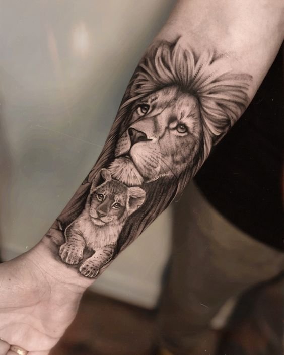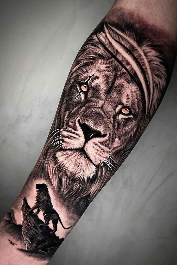 Лъвът е грациозно животно, което притежава сила и ловкост, движи се бързо и прави скокове с дължина до 11 метра. Естетическата привлекателност на хищника е още една причина да изберете тази скица за татуировка. Представителят на котешкото семейство привлича вниманието с плетената си грива и ужасява със свирепия си рев.
