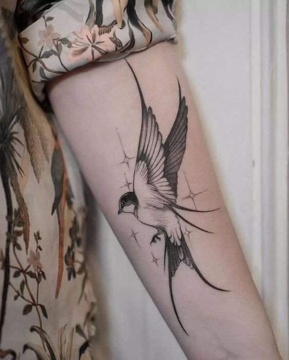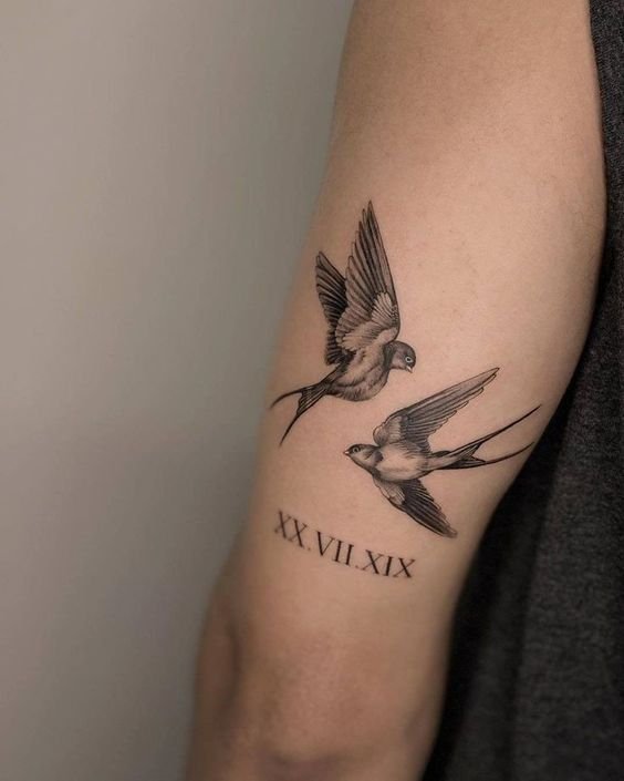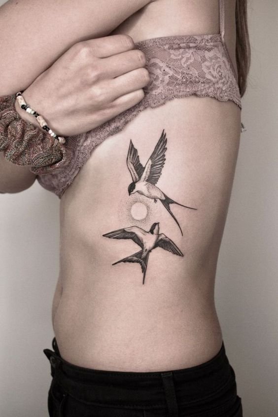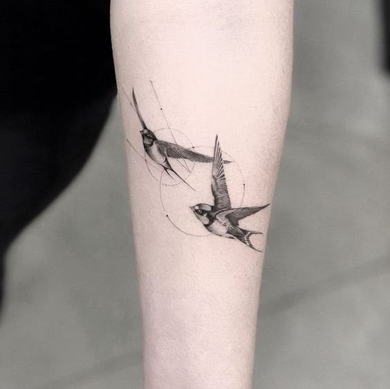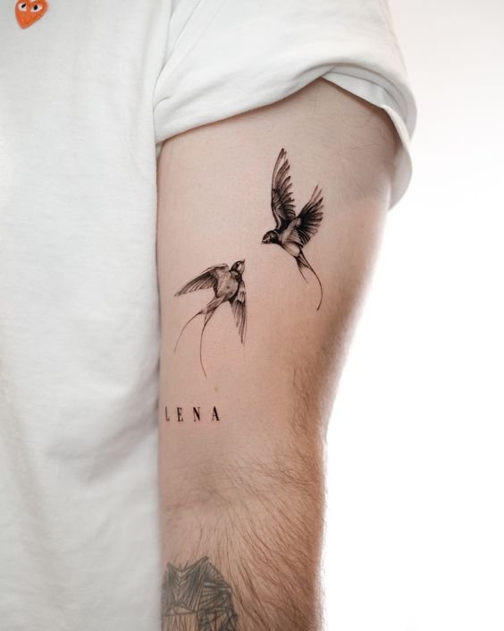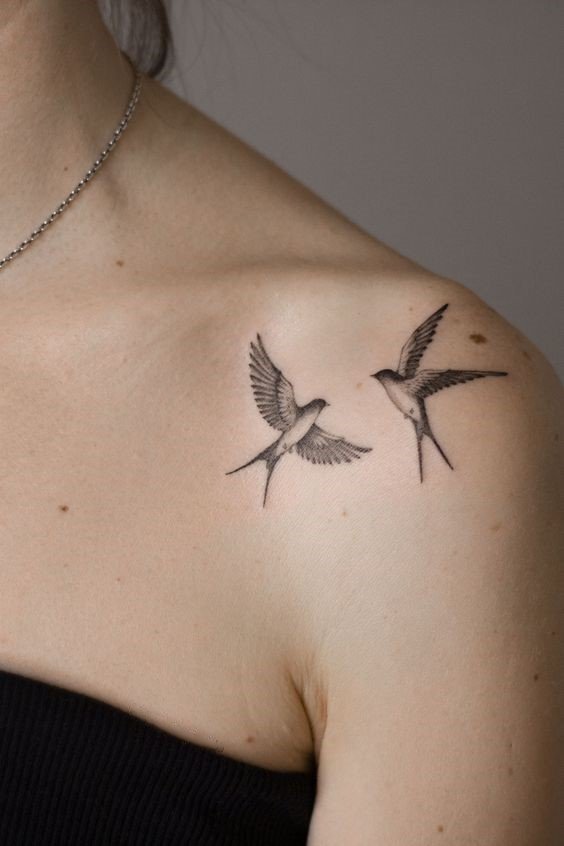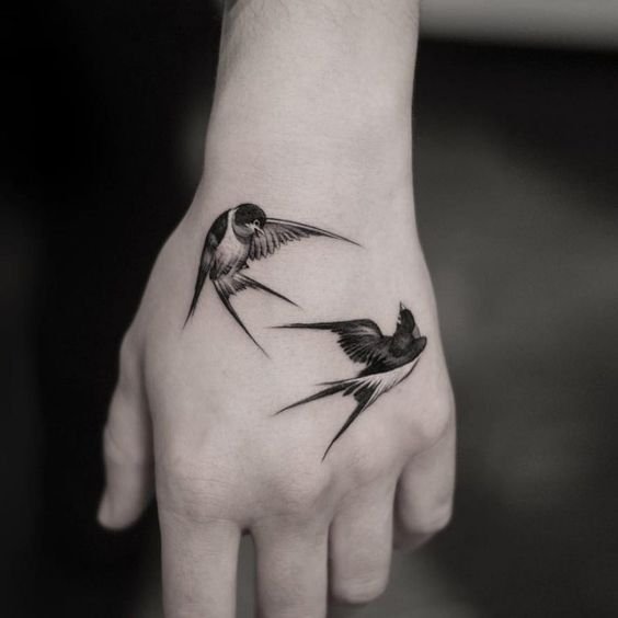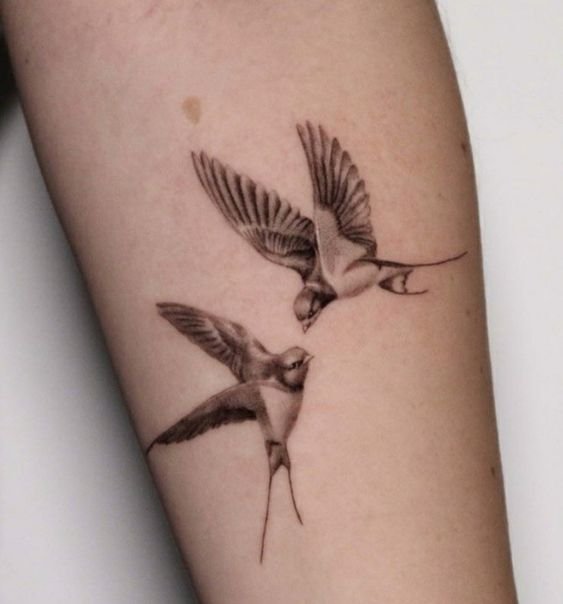 Лястовиците са моногамни птици, които остават верни на един партньор. Татуировката може да означава щастлива любов, вярност, отдаденост на семейните ценности. За да се засили значението, често до птицата се изобразява сърце, цветя и други символи на любовта.