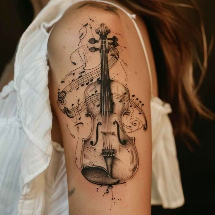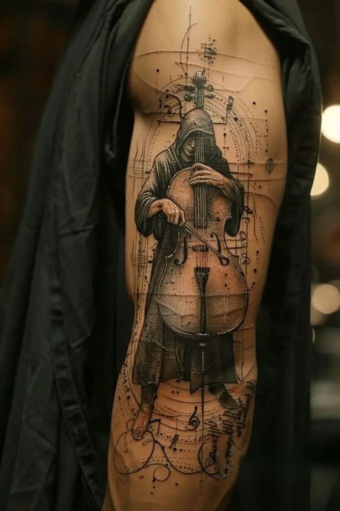 - Творческо изразяване: Музикантите често избират татуировки, свързани с техните инструменти или нотни партитури, за да подчертаят връзката си с творчеството.