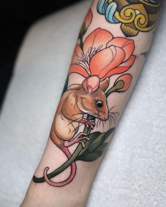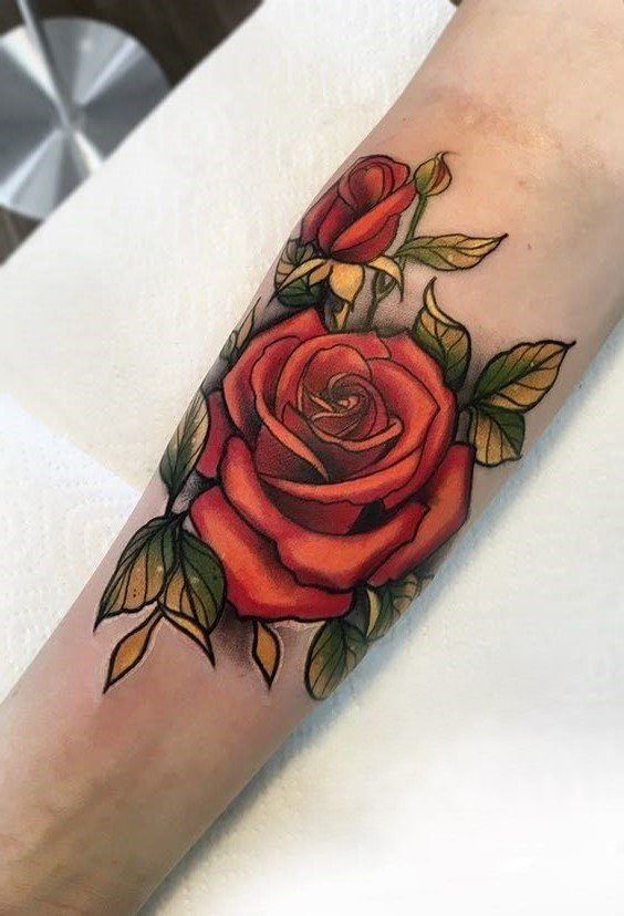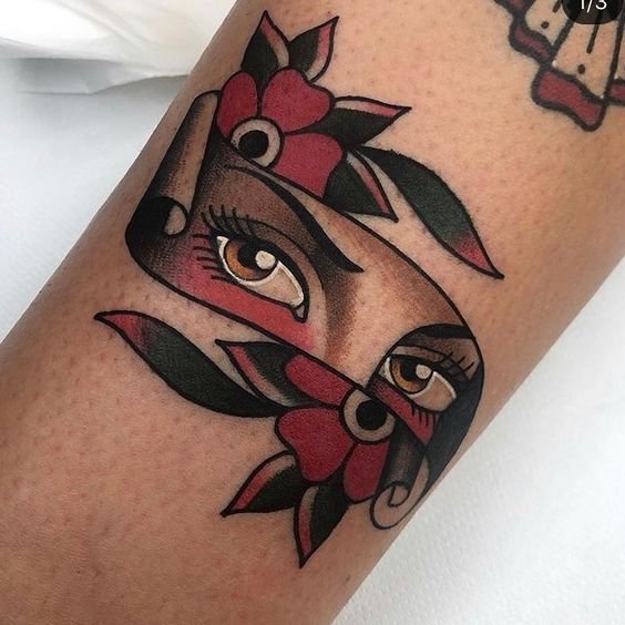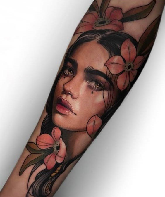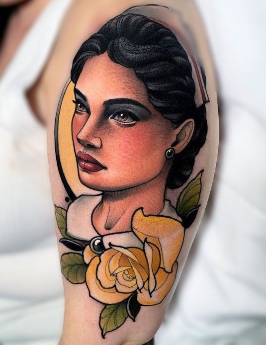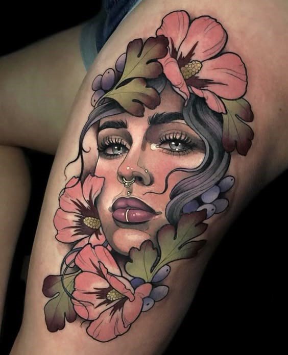 Женските татуировки в стил нео-традишнл могат да включват по-елегантни и изискани елементи: