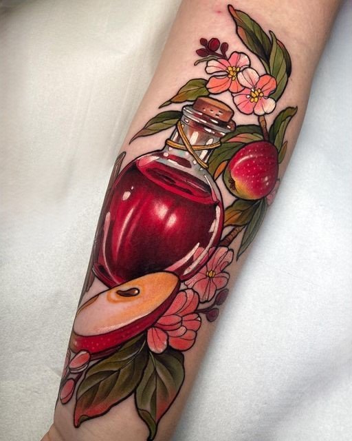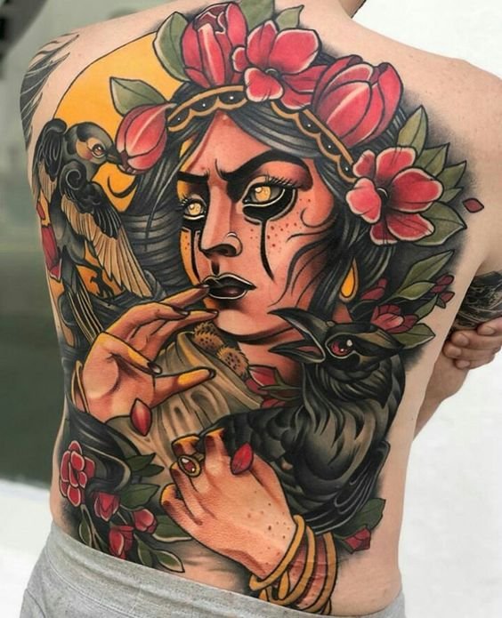 Нео-традиционните татуировки са наситени със символика, като всеки елемент може да носи дълбок смисъл: