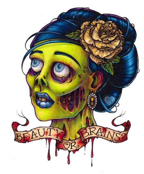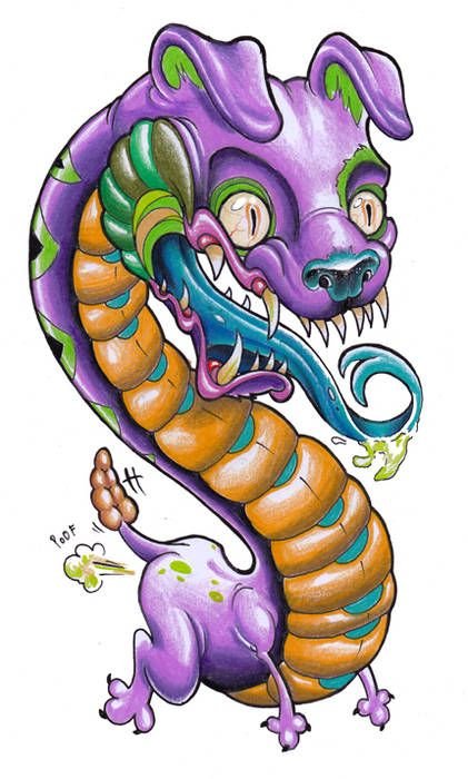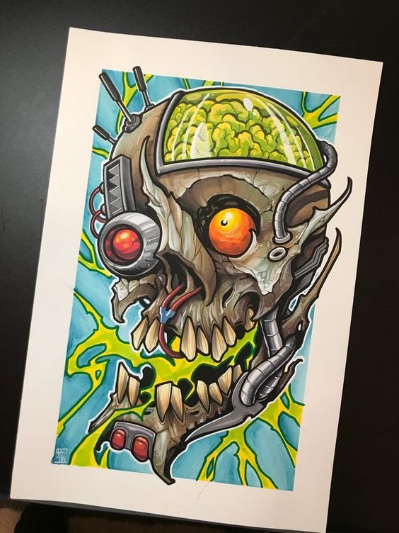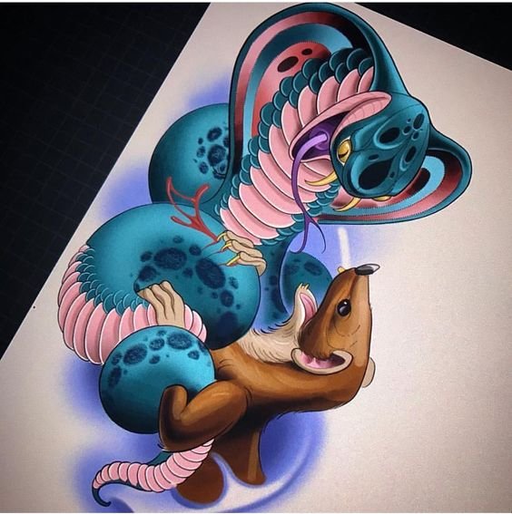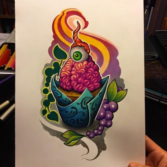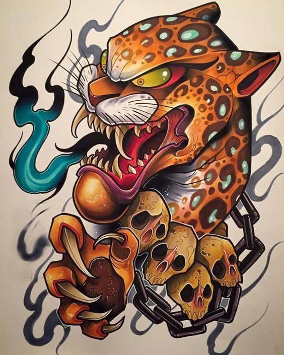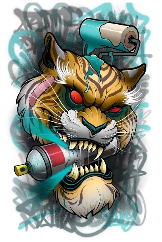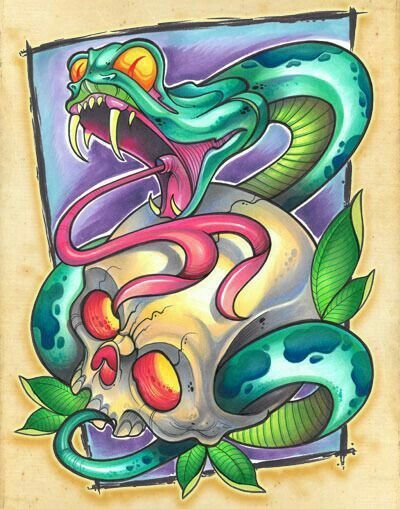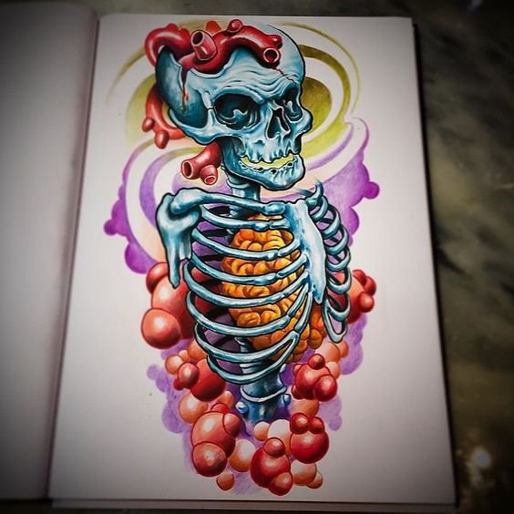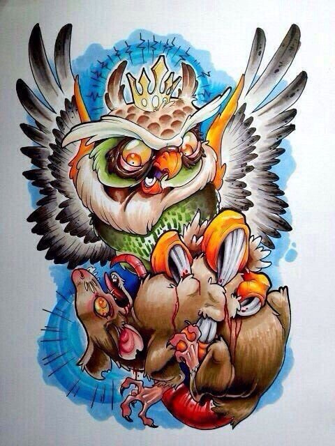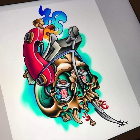 Доста често има скици на татуировки на Ню Скул, в които се смесват всички посоки на стила.