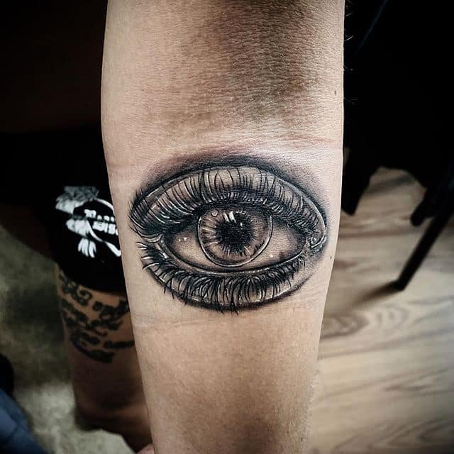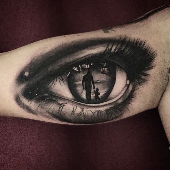 Татуировката с това изображение е широко търсена сред представителите и на двата пола. Изпълнява се татуировка в различни цветове, стилове и техники, като към една и съща подложка се изобразяват не само човешки очи, но и очите на птици, животни и дори анимационни герои. Доста често можете да намерите изображение на плачещо око, с тази татуировка хората обикновено оставят спомена за починали близки или изгубени любими хора. Татуировката на око и дърво символизира добро здраве, плодородие и стабилност.