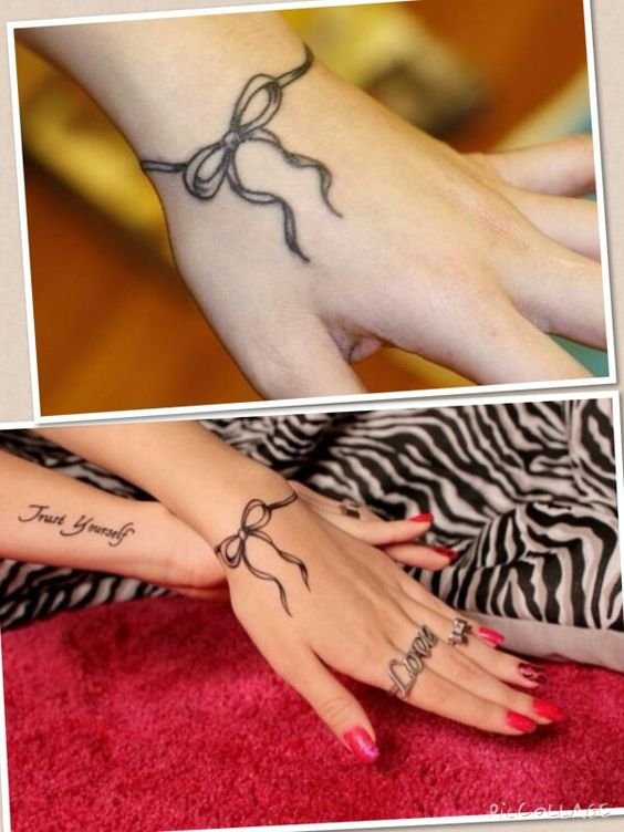 Няма конкретни ограничения при нанасянето на изображението на панделка върху тялото, всеки може да избере място за рисунката и нейното цветово съотношение. Панделката изглежда много колоритно в ярки, пъстри цветове, не по-малко забележителни и очарователни са и панделките в черни тонове. Ажурната панделка, украсяваща китката, гърдите или шията на момичето, изглежда особено великолепно.