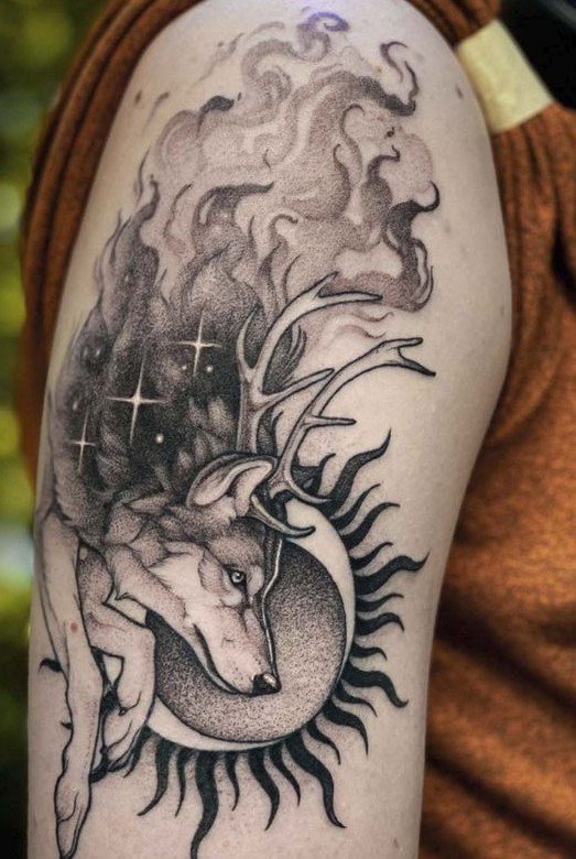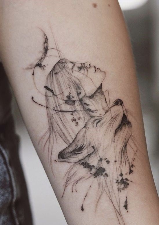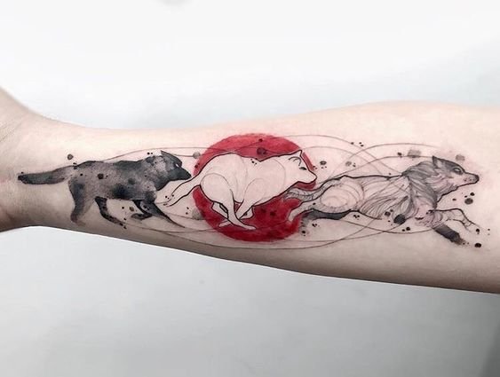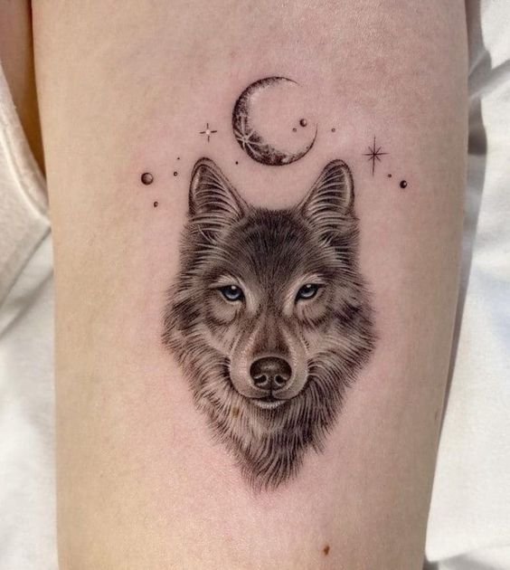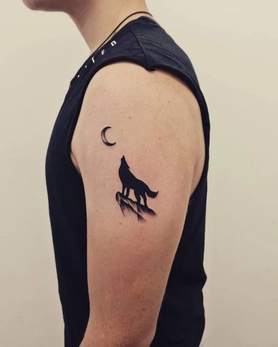 - Най-често този образ се свързва със самотата, независимостта и вътрешната сила. Понякога такива татуировки се рисуват след предателство, като с негова помощ се показва недоверие и подозрителност към хората. Силуетът на вълк на фона на луната се символизира и като желание за грижа и опека.
