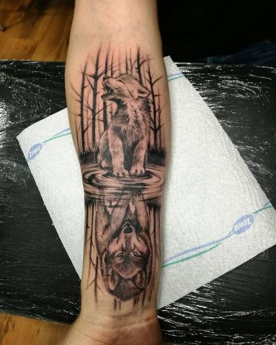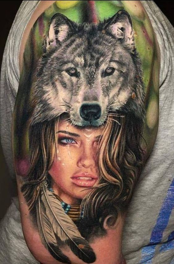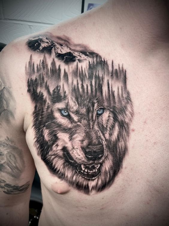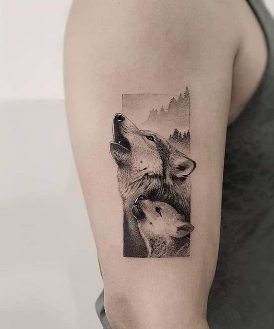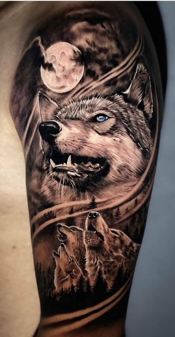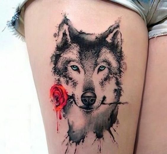 Вълкът е много силен и смел хищник, най-често изображението му се отпечатва на раменете, гърдите или гърба, момичетата също предпочитат да си направят татуировка на лопатката, врата или крака. Най-разпространеният дизайн на вълк е в черно и бяло, защото изглежда най-реален. Много хора свързват вълците с агресия, хитрост и гняв, главно поради факта, че от древни времена вълците се бият с хората за храна. Много хора свързват вълците и с другия свят и силите, всъщност вълкът обича да ловува нощем, нощем очите му са особено страшни и много загадъчни, особено когато вие на лунна светлина.