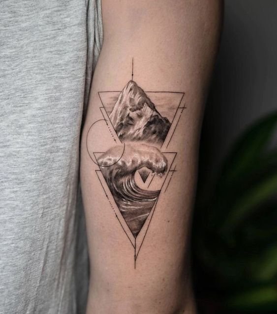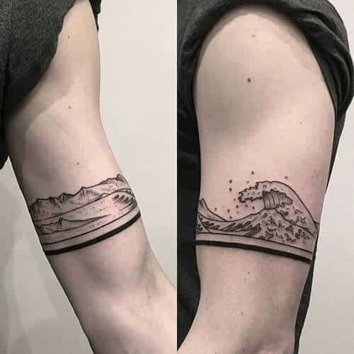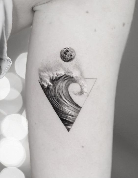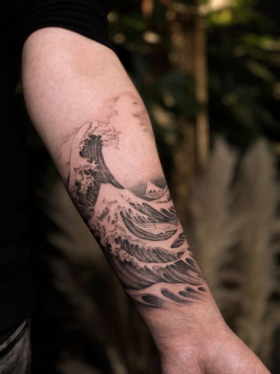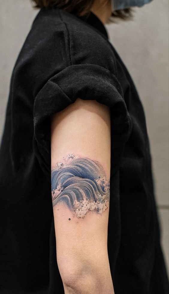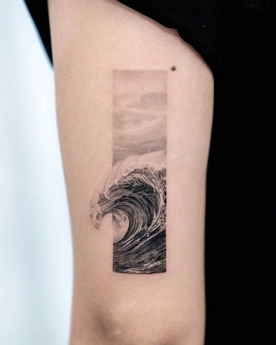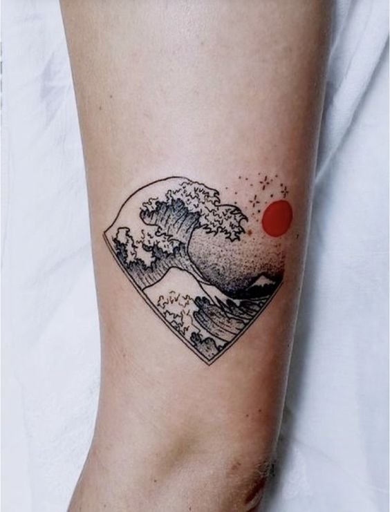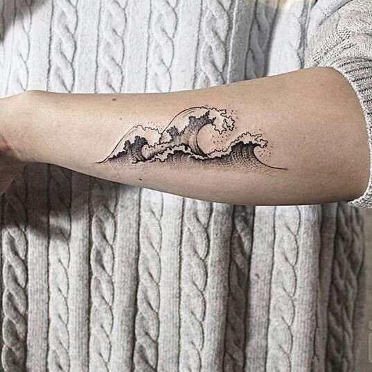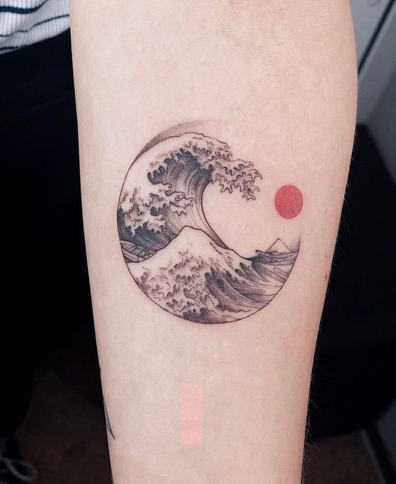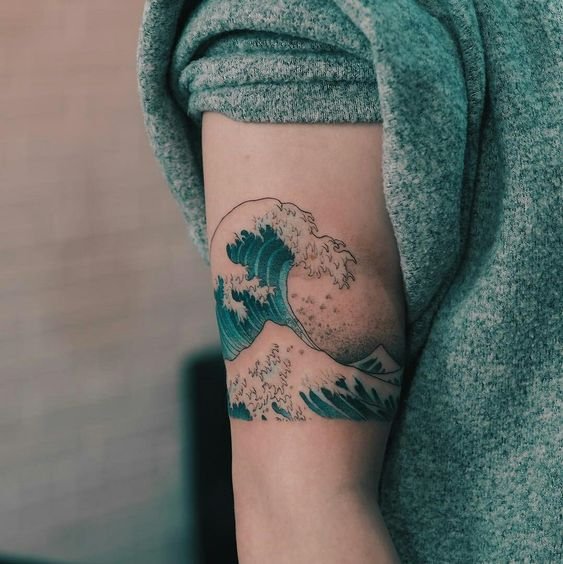 Голяма заоблена вълна може да означава хармония, решителност, саморазвитие и усъвършенстване. Работата е поставена в квадрат. За моряците, от друга страна, е по-характерно прилагането на няколко вълни. Тази татуировка е популярна както сред моряците, така и сред капитаните.