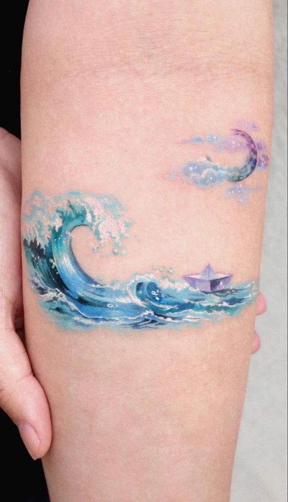 Вълна. Тя е свежест. Тя поглъща човека, обливайки го с животворна вода. Свежите идеи, полетът на фантазията, живостта на ума и ерудицията - всичко това говори за човека, който си е направил татуировка.