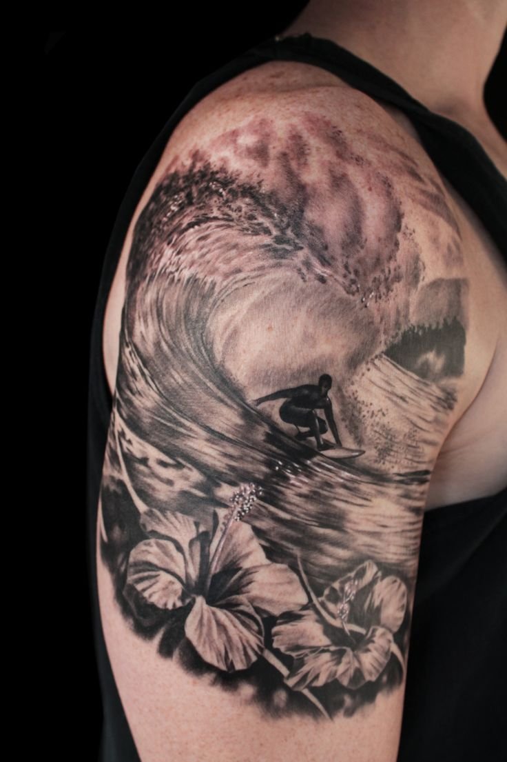 Ако темата вече е ясна, остава само да изберете скица. Тя може да бъде известна скулптура на гениален художник. Заслужава си също така да разгледате филми и карикатури, за да добиете представа за задачата. Ако изображението не може да бъде оформено, винаги сме щастливи да помогнем с художественото оформление и да го пренесем върху кожата. Произведението може да бъде и част от по-голяма татуировка: вълната ще бъде нанесена като част от съществуваща картина или нейния начален етап, първото докосване.