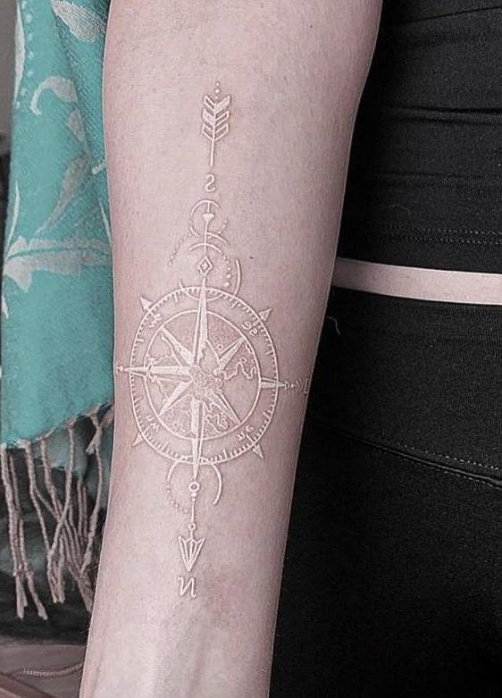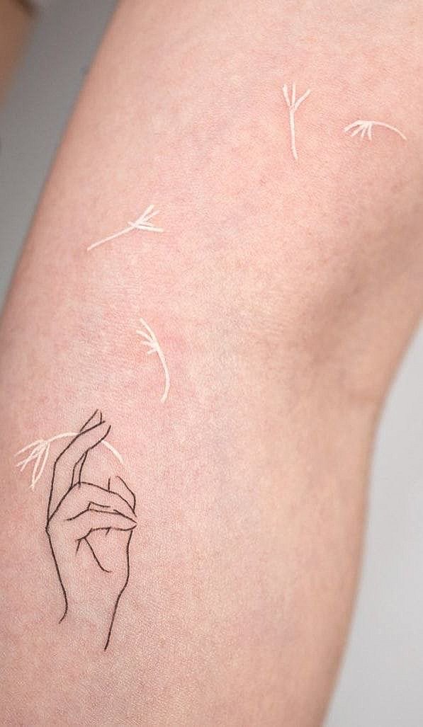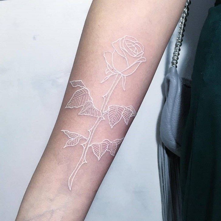 Отлични бели рисунки изглеждат на китката, рамото, глезена. Но в откритите части на тялото, които са изложени на слънце, такава татуировка трябва да се прави с повишено внимание. Под въздействието на агресивни външни фактори моделът може бързо да загуби цвят или да пожълтее. В първия случай ефектът от белези остава, което само по себе си ще изглежда интересно. И във втората ситуация, за да се възстанови красотата на модела за носене, майсторите препоръчват покриване на татуировката с различен цвят. Белите татуировки се поддават добре на припокриване.
