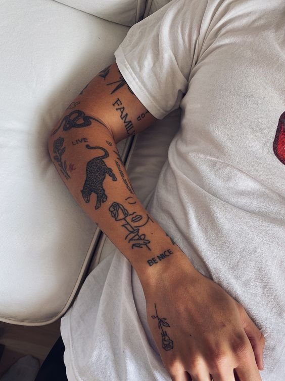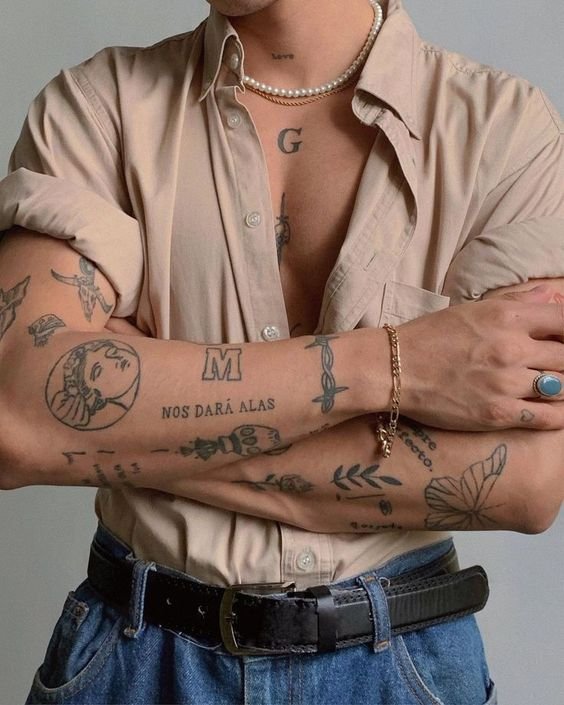 Според статистиката появата на монохромна скица върху ръката на друг желаещ се равнява на появата на брутална цветна рисунка. Някои от най-популярните мъжки татуировки върху предмишницата включват: