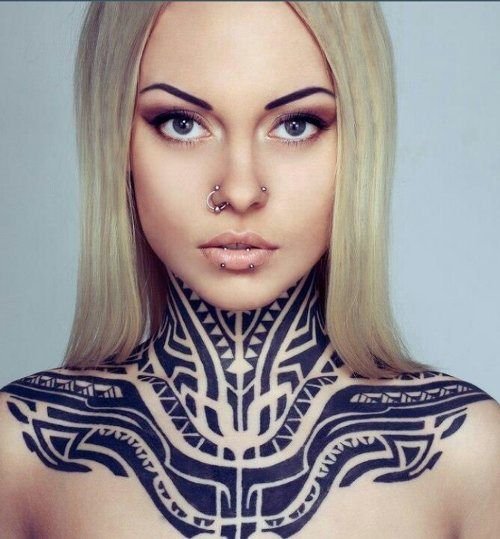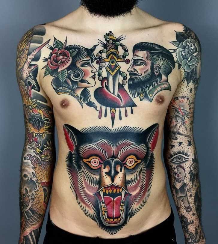 На гърдите или дори на гърба японският стил или New school ще изглежда добре. Neo Tribal трябва да изглежда масивнo, само големи площи. Например раменете и коремът са идеални.