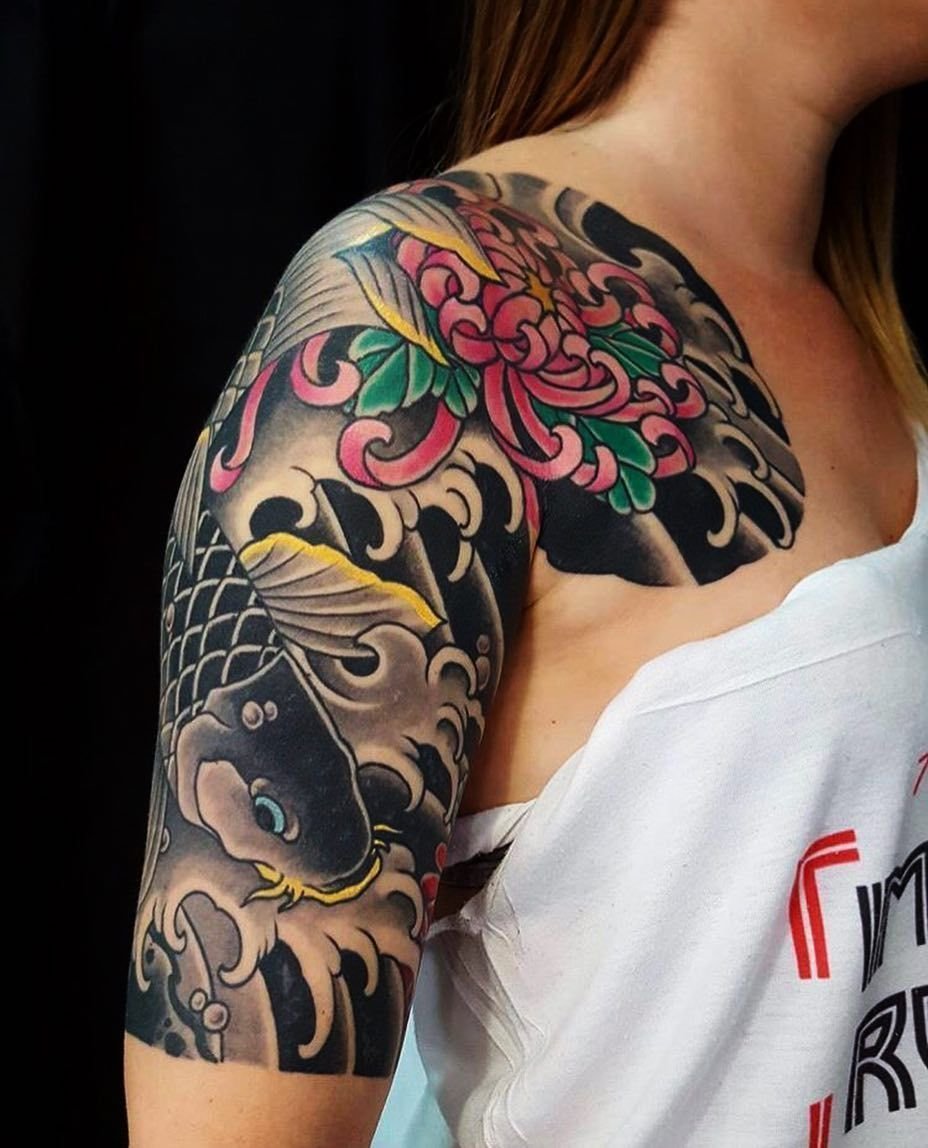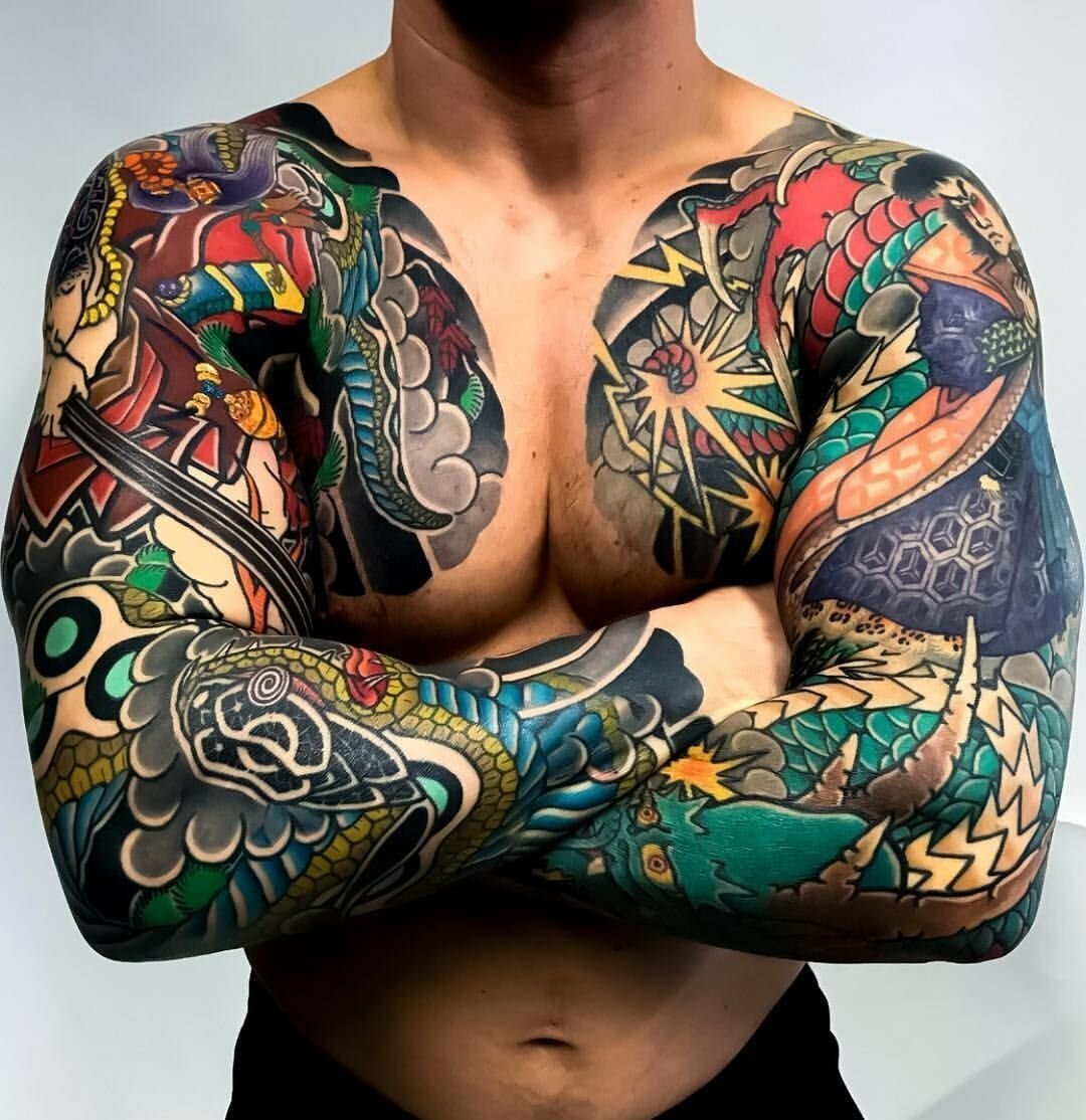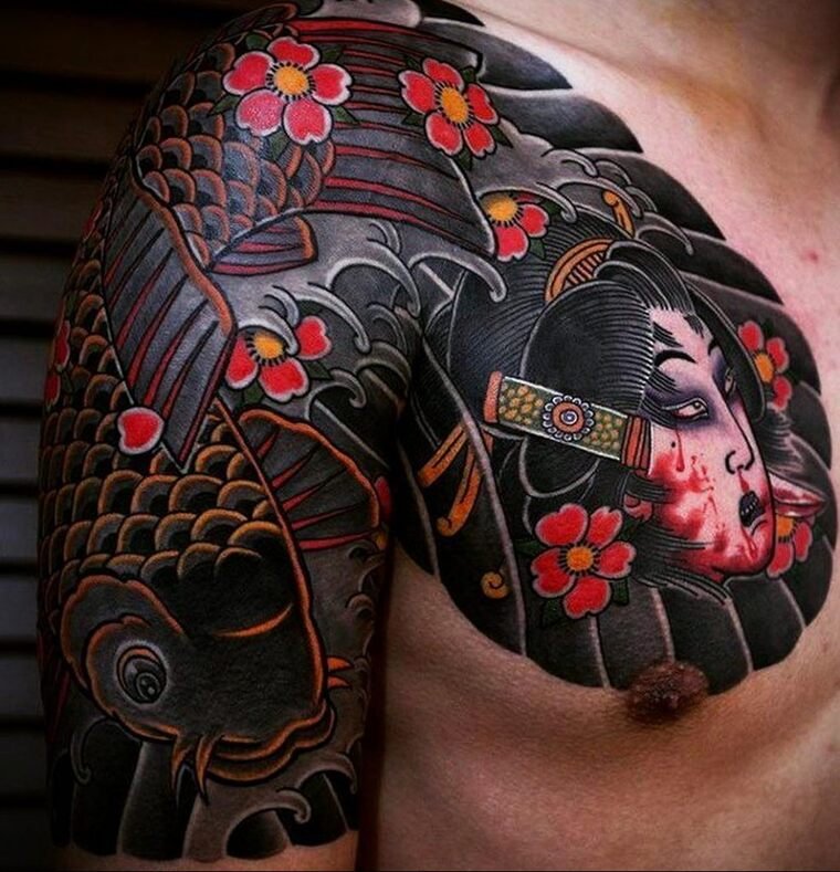 Ако искате „правилна“ татуировка в японски стил, тогава тя трябва да бъде голям дизайн с ярки цветове и културни символи.