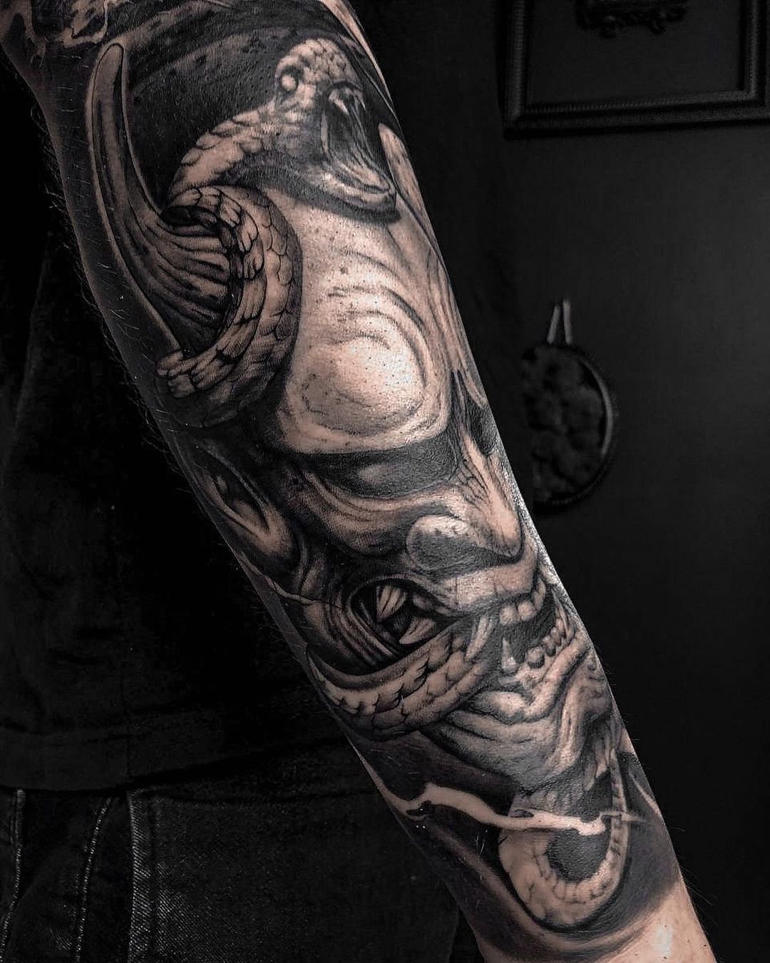 Можете да носите Blackwork на ръкава, на предмишницата или на рамото.