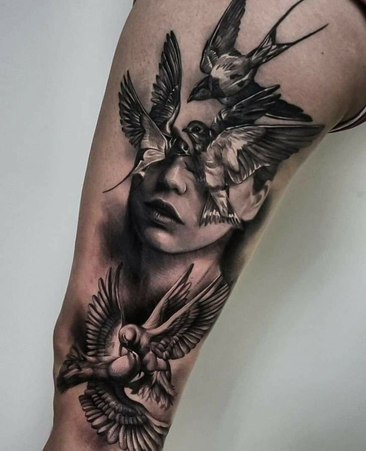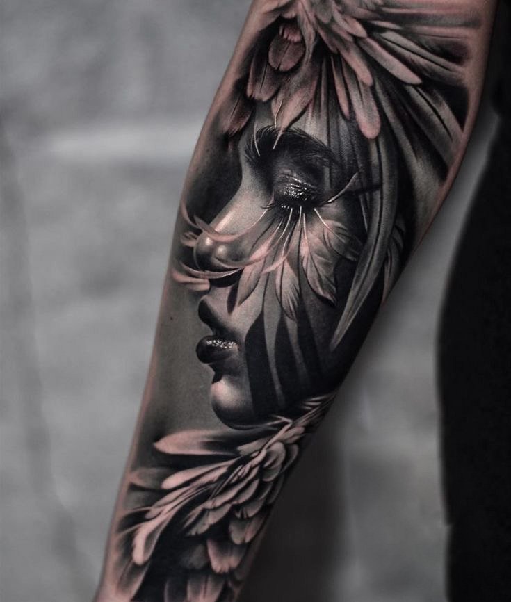 Избирайки реализъм, не можете да се ограничавате в идеите. Нека бъде портрет на бедрото или цветя на ребрата, единственият ориентир са вашите предпочитания. Нанесете Dark lettering на врата или миниатюрен на китката. Sculpture изглежда добре в областта на раменете или на предната страна на бедрото.