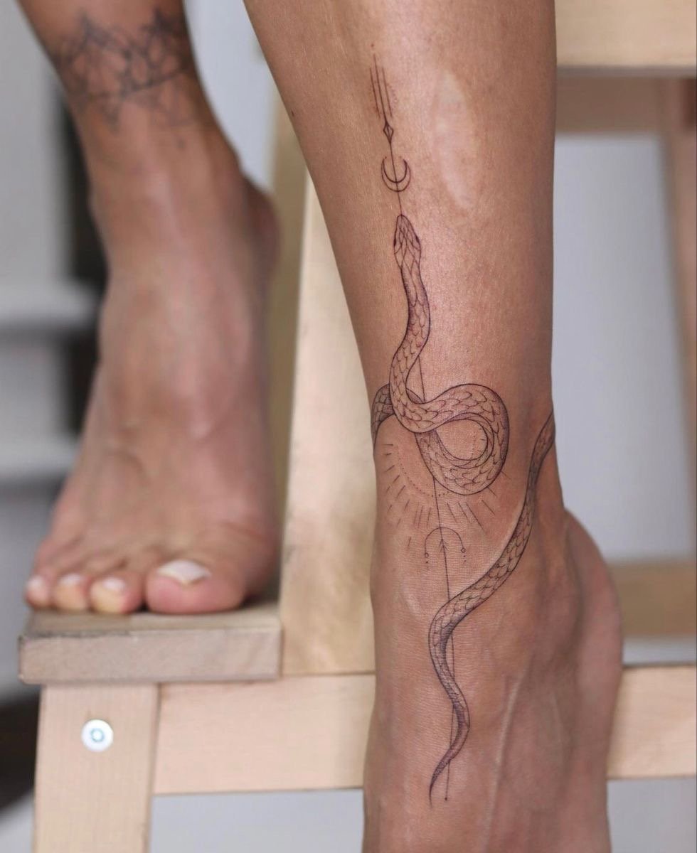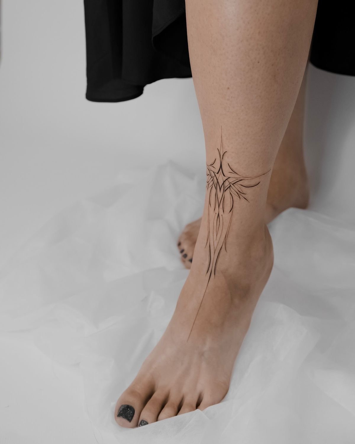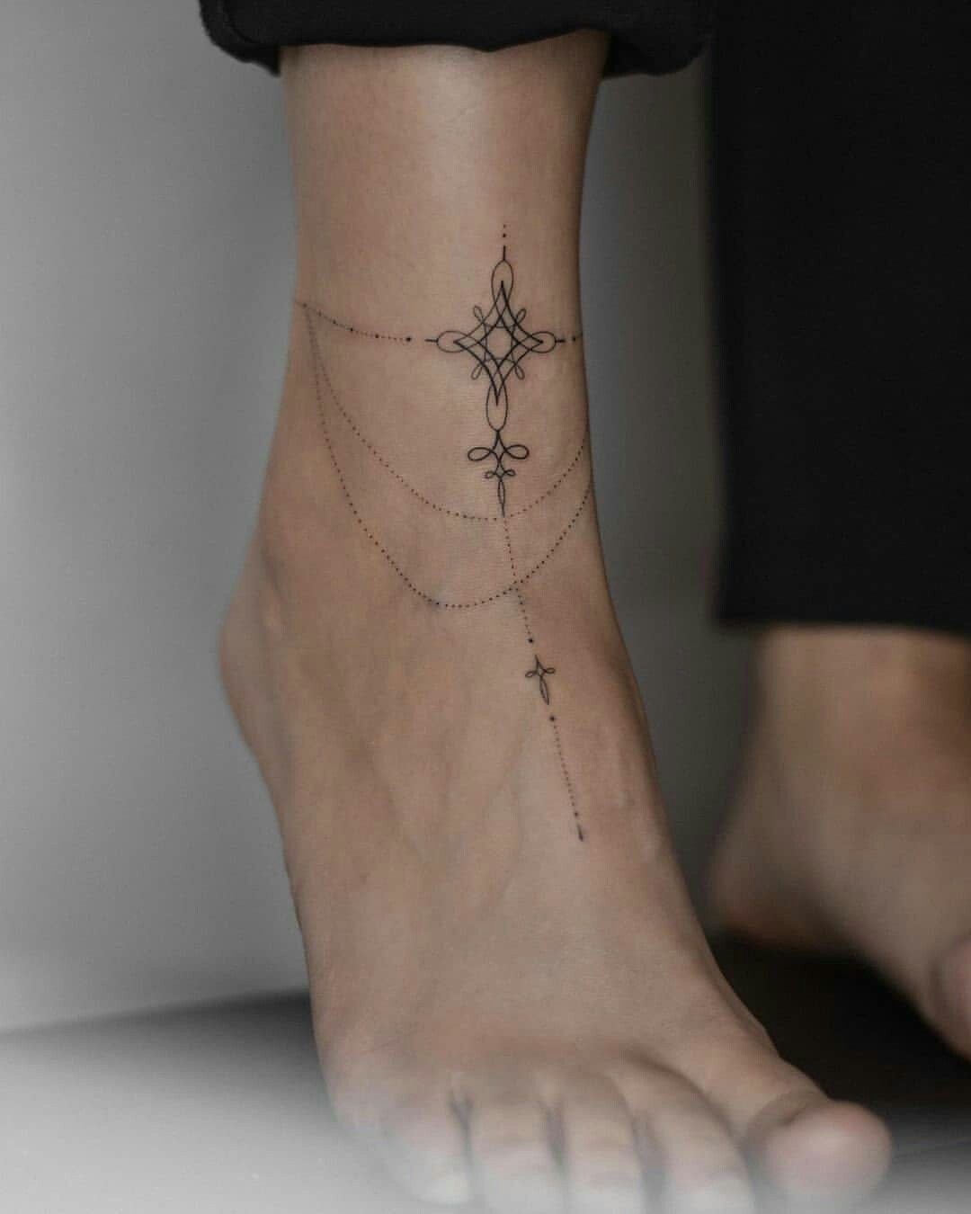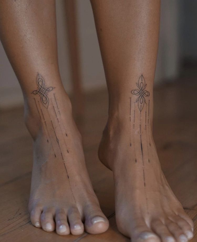 - Минимализъм и символи: Малки татуировки като точки, линии или геометрични фигури изглеждат стилно на глезена. Тези символи могат да бъдат минималистични, но изпълнени с дълбок смисъл.