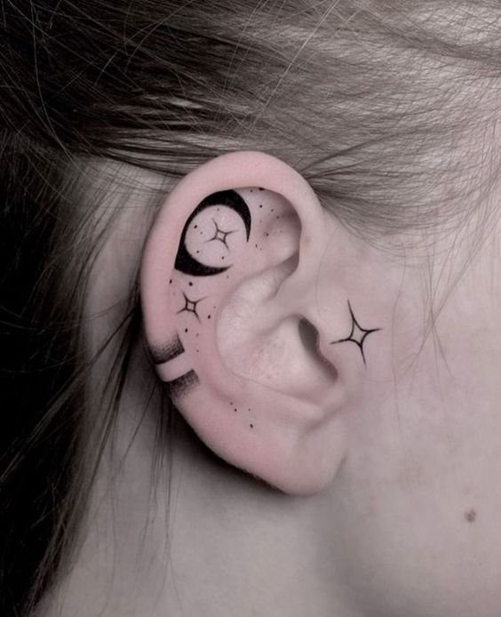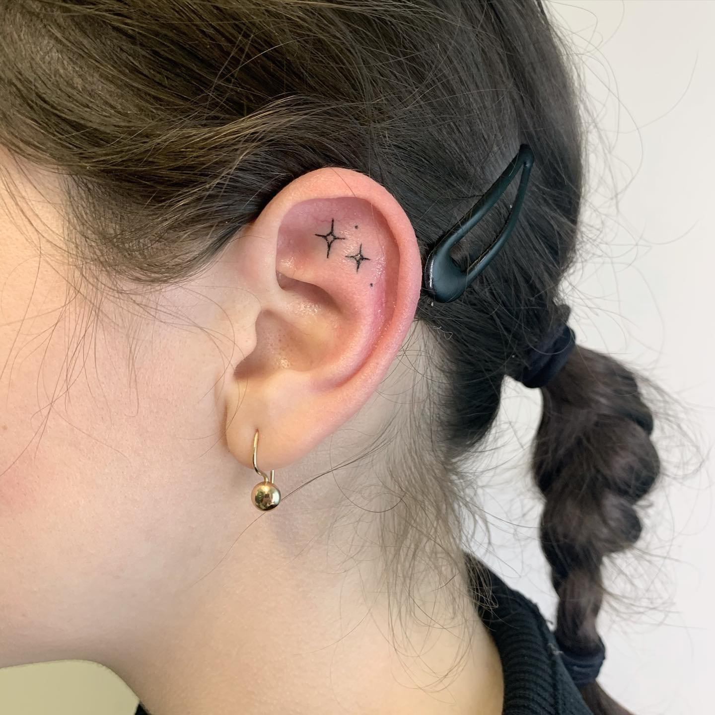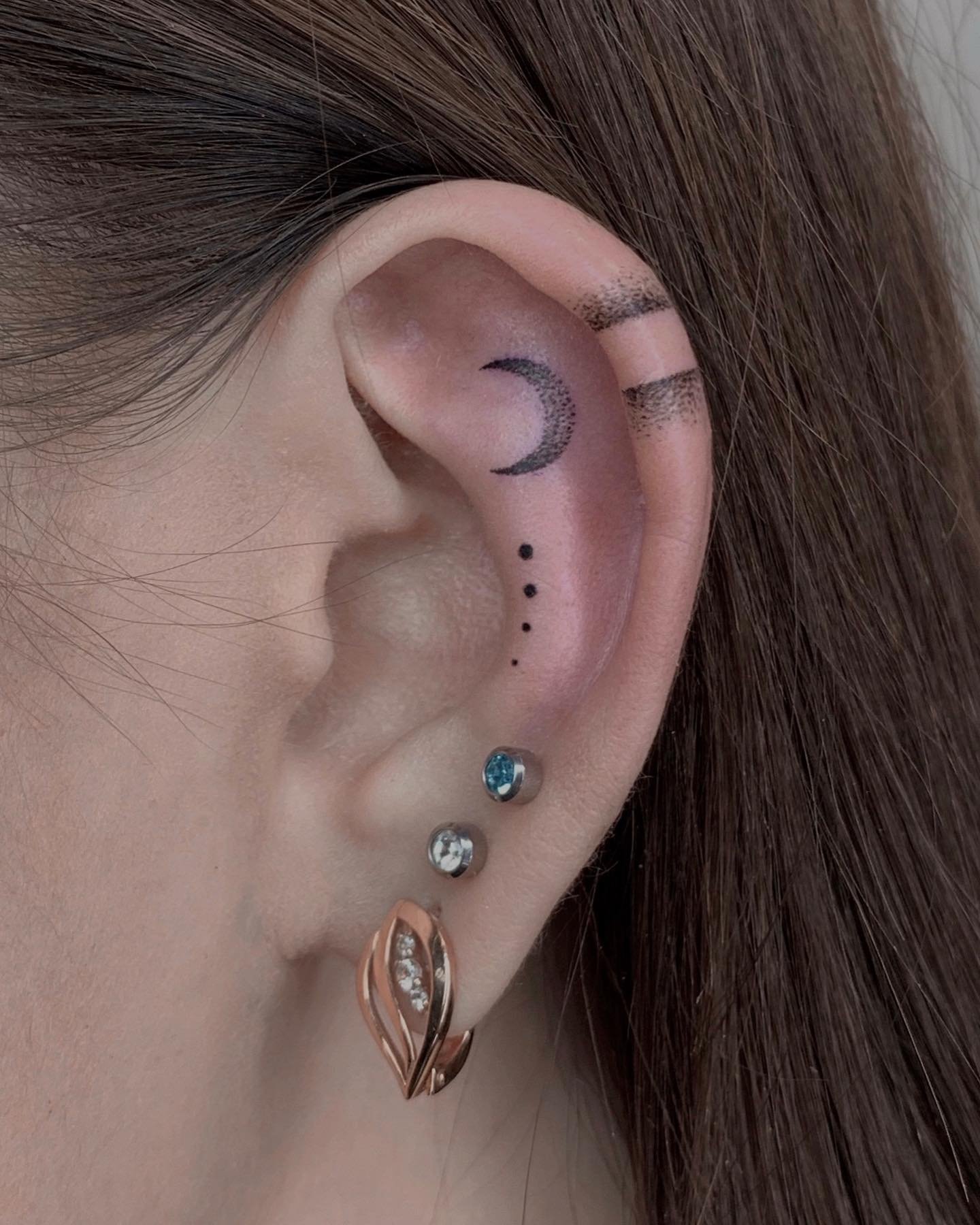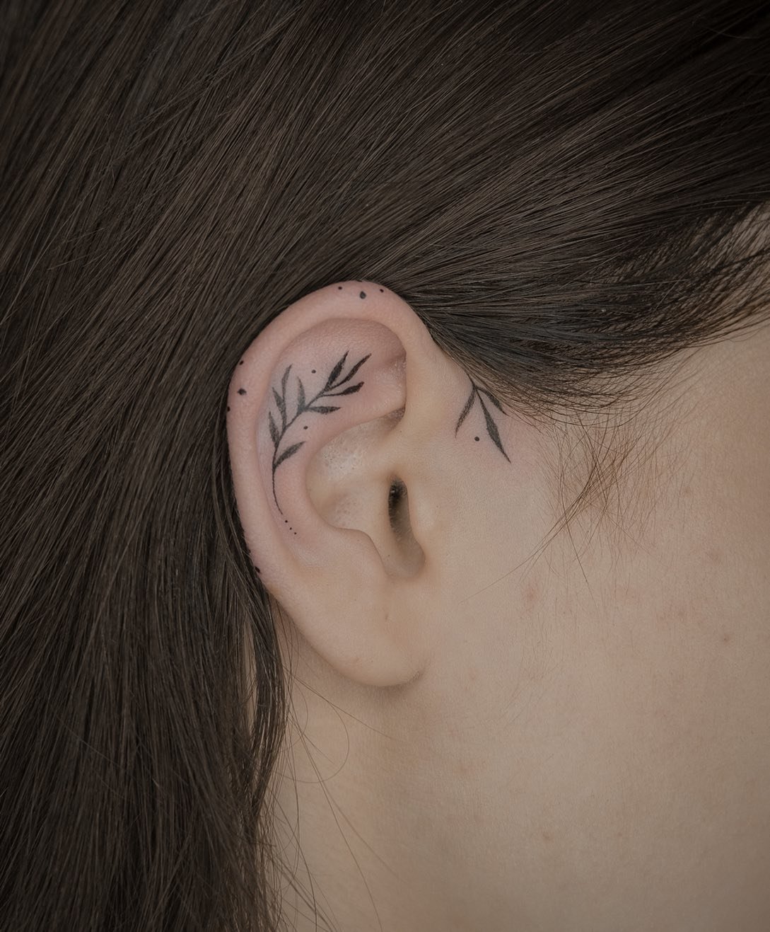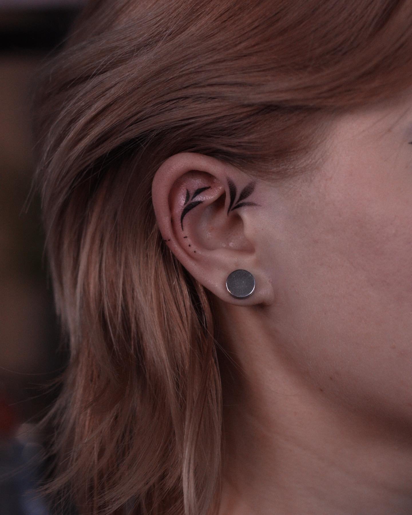 Татуировките зад ушите и в ушите са като малка тайна, която се разкрива само на тези, които са внимателни.