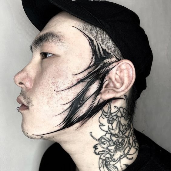 Това място беше едно от последните избрани за татуировка след ръцете, краката и торса. През последните няколко години тази форма на творческо изразяване придоби популярност сред по-широкото население. Причината за тази тенденция може да са известни личности с рисунки по лицата. Като Риана, Травис Баркър, Пост Малоун, Лил Пийп и др. В допълнение към влиянието на инфлуенсърите важна роля играе желанието за ярко и уникално себеизразяване.