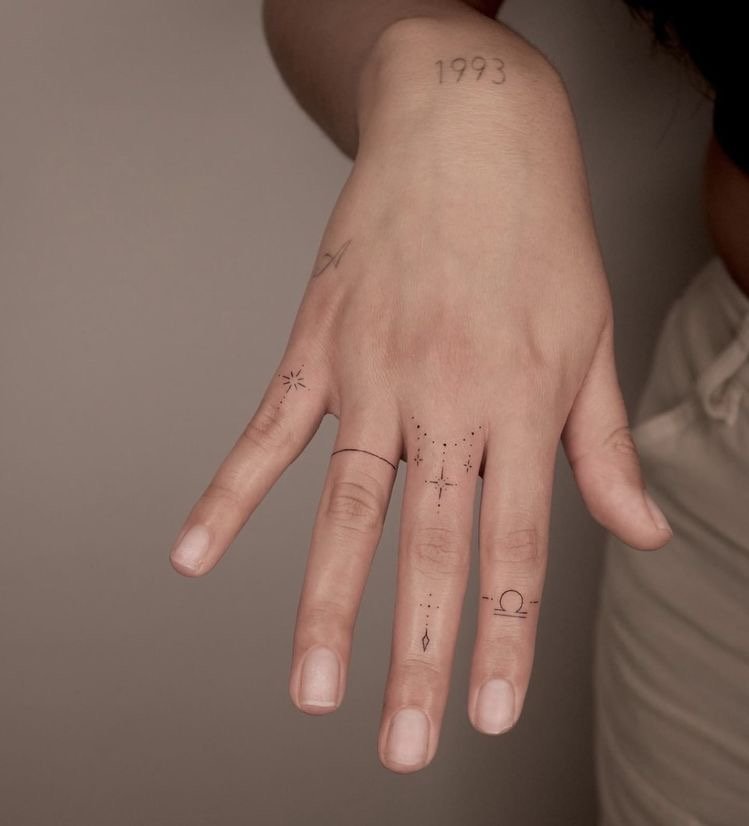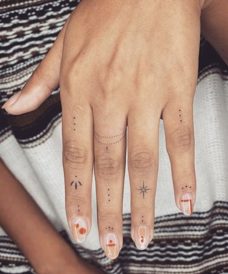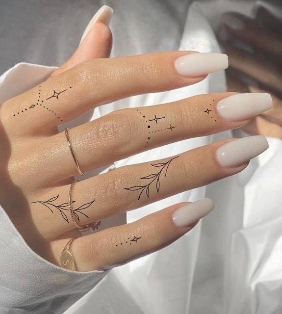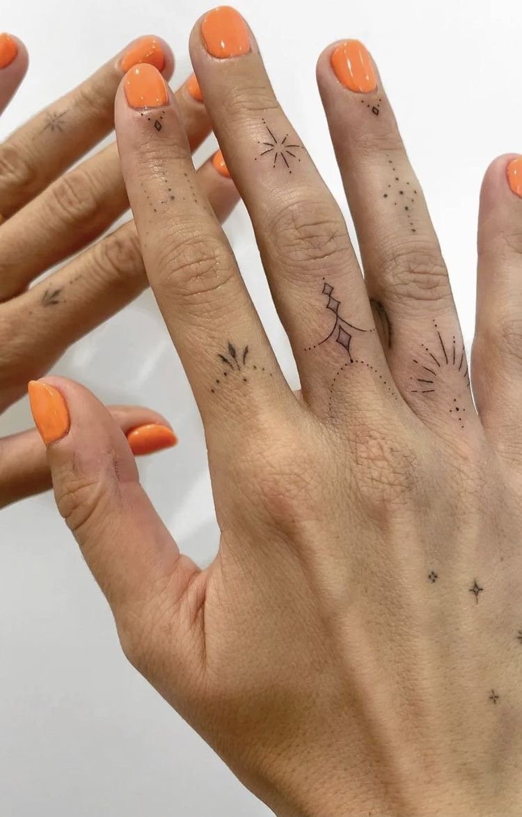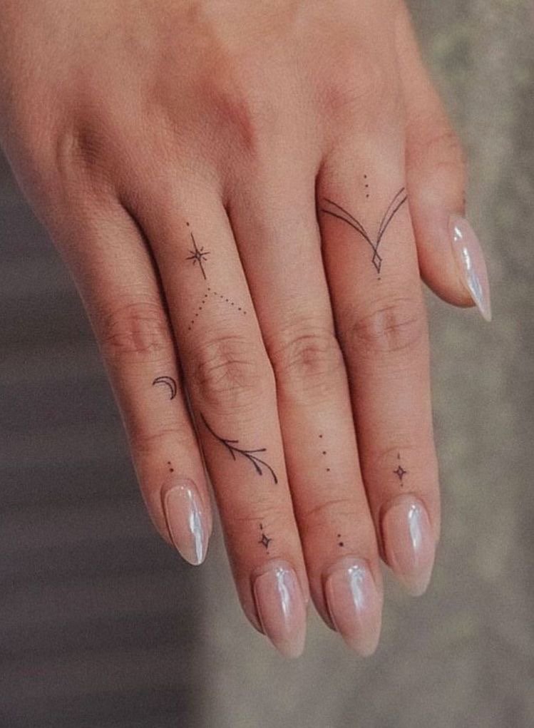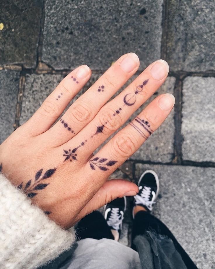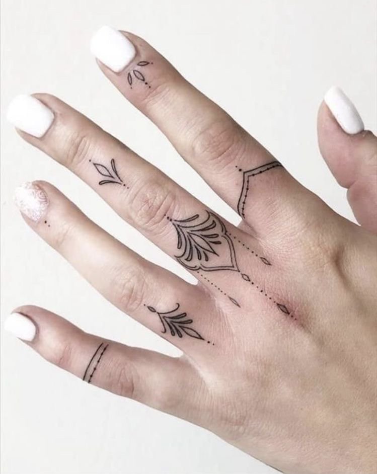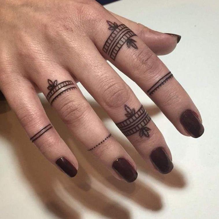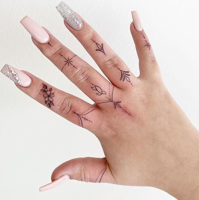 Както при пръстените, при избора на пръст за татуиране се вземат предвид различни детайли: значението не само на изображението или надписа, но и на самия пръст. Татуировката се прави на палеца, когато искат да покажат сила на характера, твърдост и авторитет. Показалецът е надарен с почти магическа сила и често на този пръст се използват татуировки с космическа тематика. Най-смелата природа ще избере татуировка на средния пръст - това е за бунт, борба срещу стереотипите. Често татуировките на средния пръст имат по-буквално значение, отколкото символично. Безименният пръст е пряко свързан със сърцето, така че женска татуировка на пръста, предназначена за сватбен пръстен, ще съответства на романтична и чувствена природа. Колкото и да е странно, но малкият пръст се смята за „интелектуално“ място за татуировка.