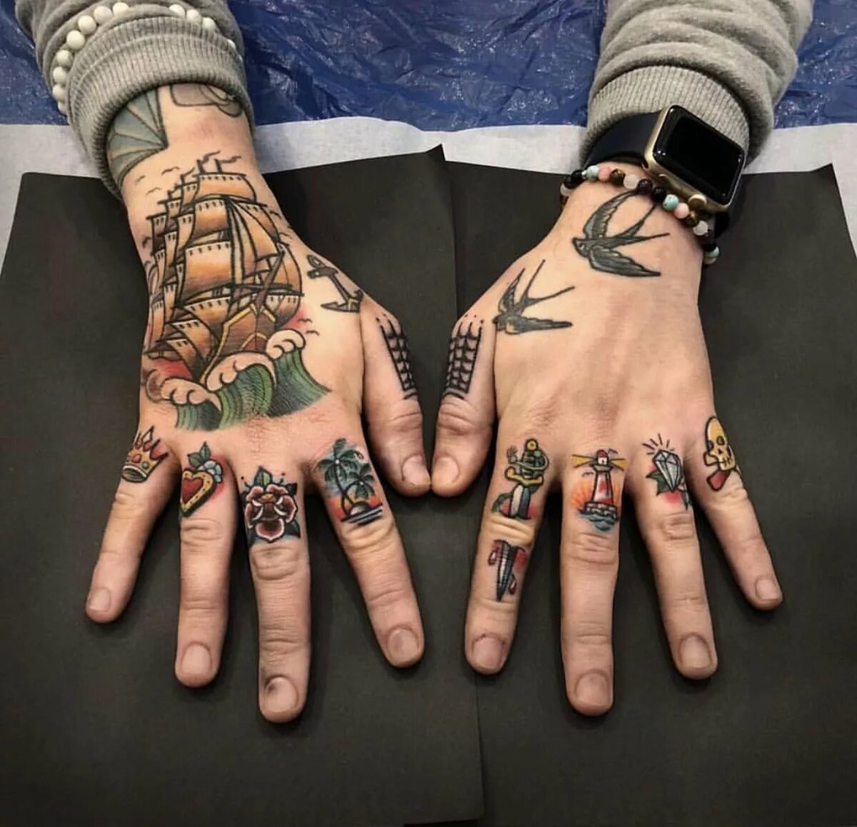 Татуировките могат да заемат един или няколко пръста и може би дори да съставят цялостна картина на четири пръста от всяка страна. Няма определени правила и всичко зависи от това какво харесвате и каква е целта на вашата татуировка.