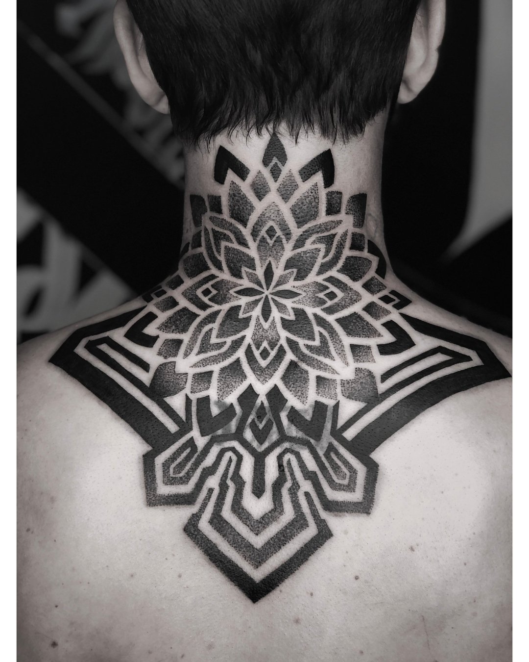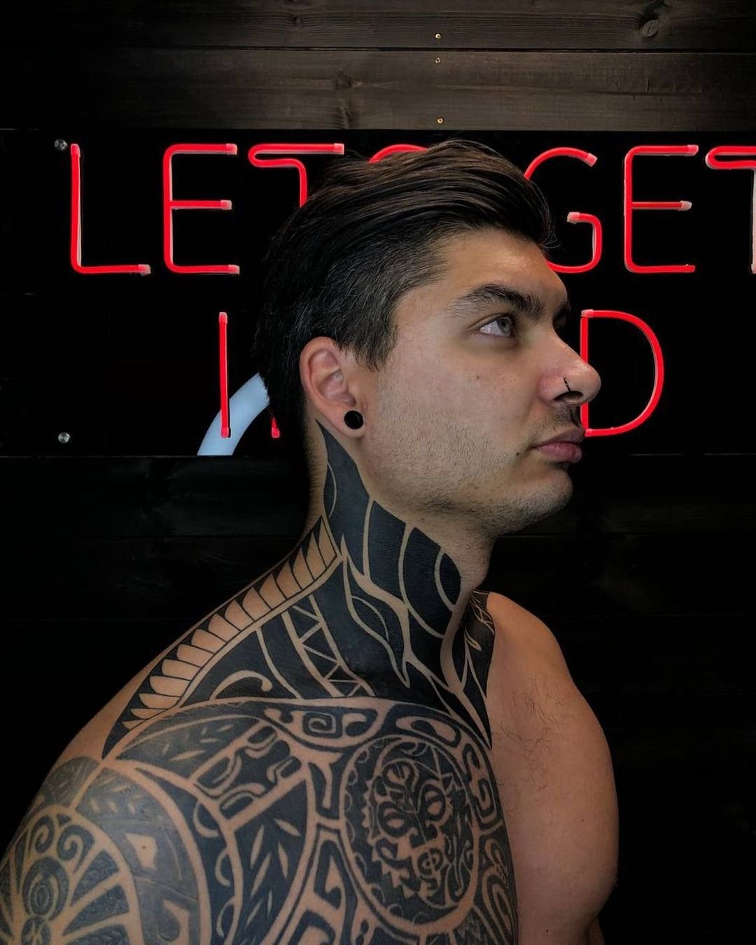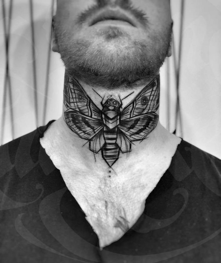 Най-често срещаното място за татуировка е отстрани на шията. Понякога момчетата започват с татуировка зад ухото и след това преминават към цялата повърхност на шията, за да я допълнят.